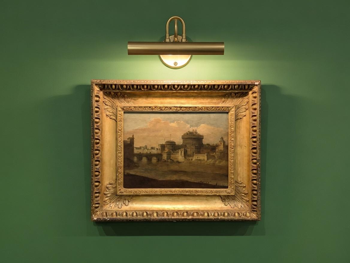 A charming 18th century Italian oil on board depicting Castel Sant'Angelo in Rome, Italy, viewed from the Tiber River.