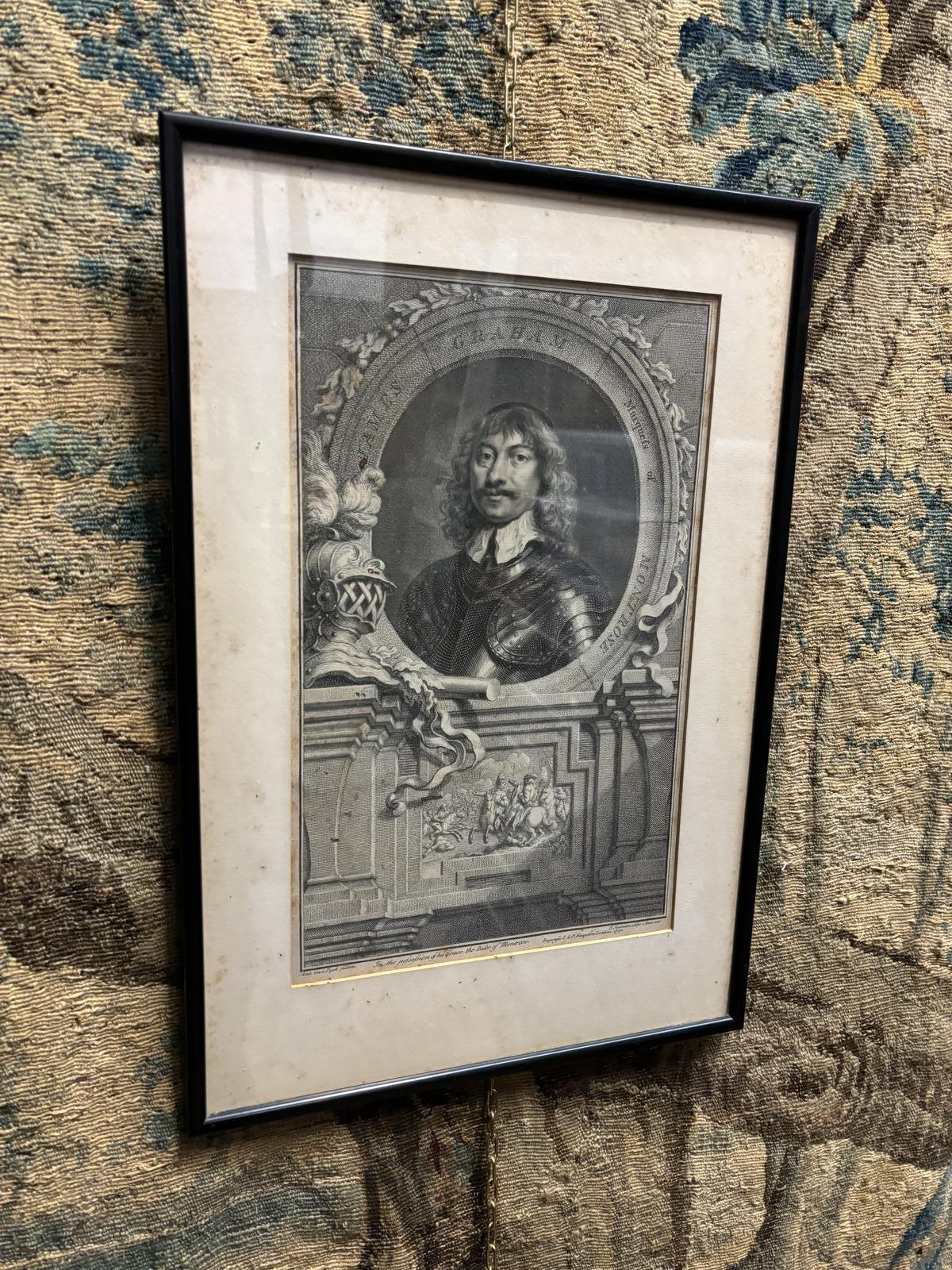 This is a very good quality 18th Century antique portrait engraving showing James Graham, Marques of Montrose.
