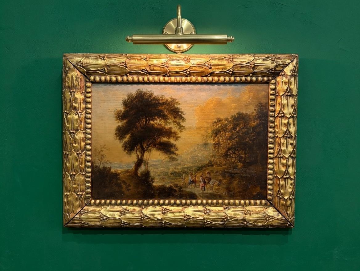 A charming provincial oil on board of a rural scene, set in to a fine quality carved gilt frame.