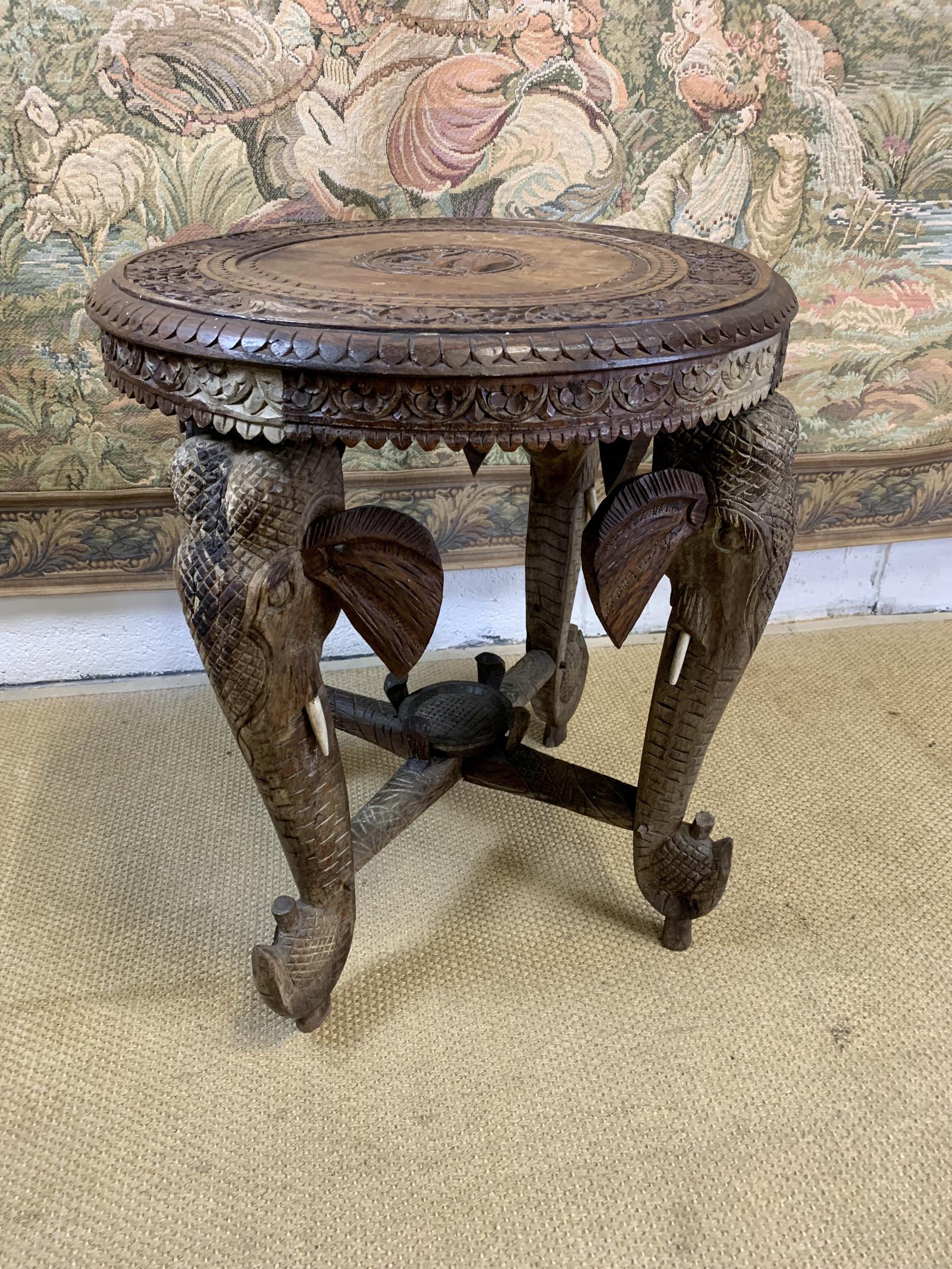 19th Century Anglo Indian Carved Elephant Occasional Table