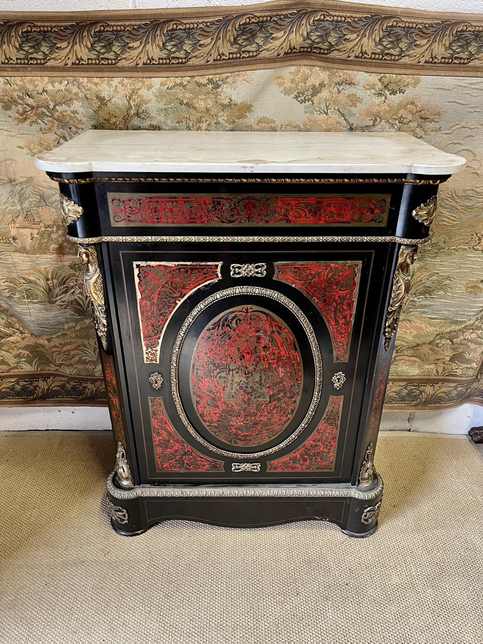 19th Century Boulle Cabinet with White Marble Top & Ormolu Decoration