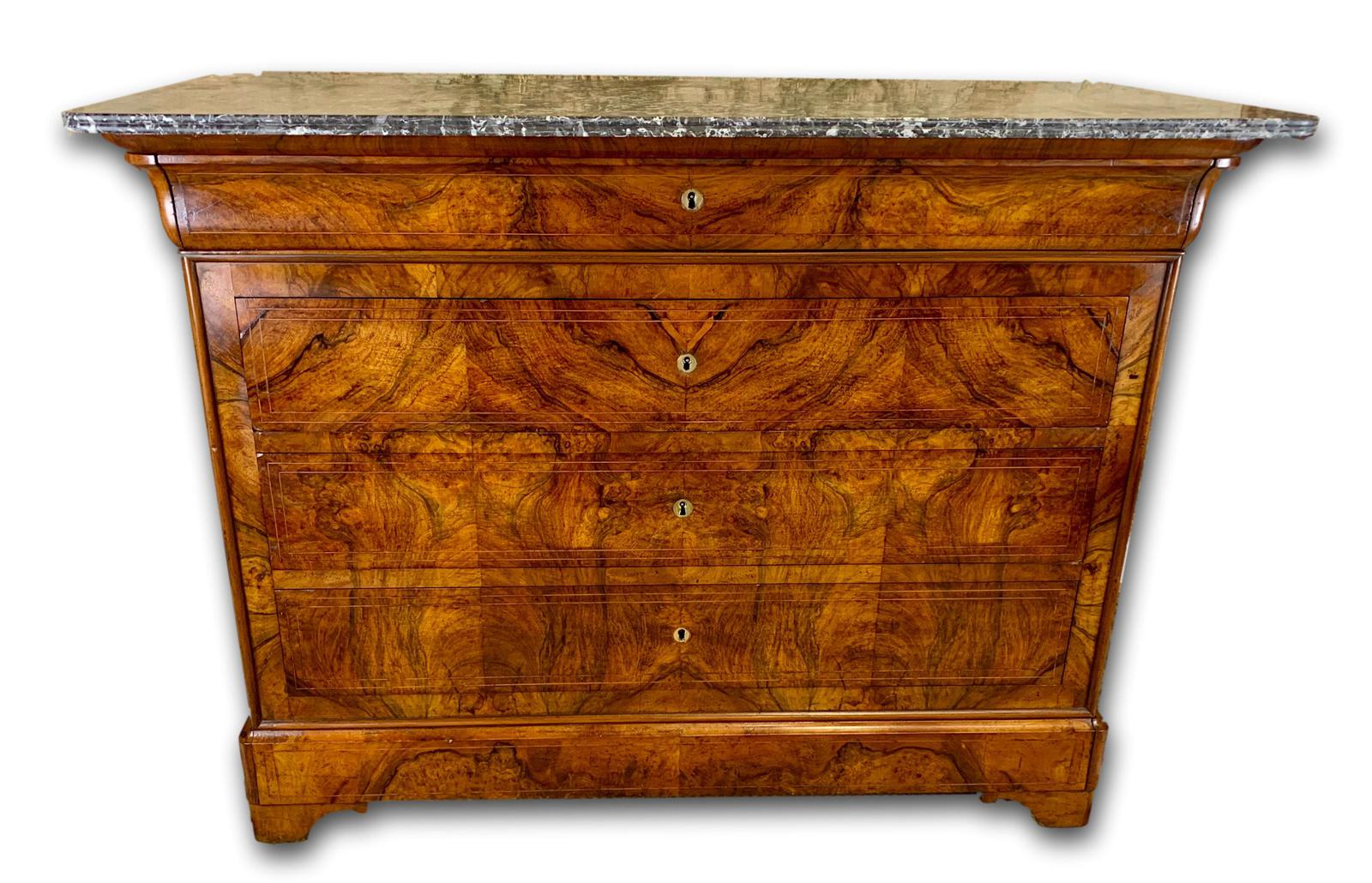 A stunning example of a French 19th C (1850) Burr Walnut Commode.