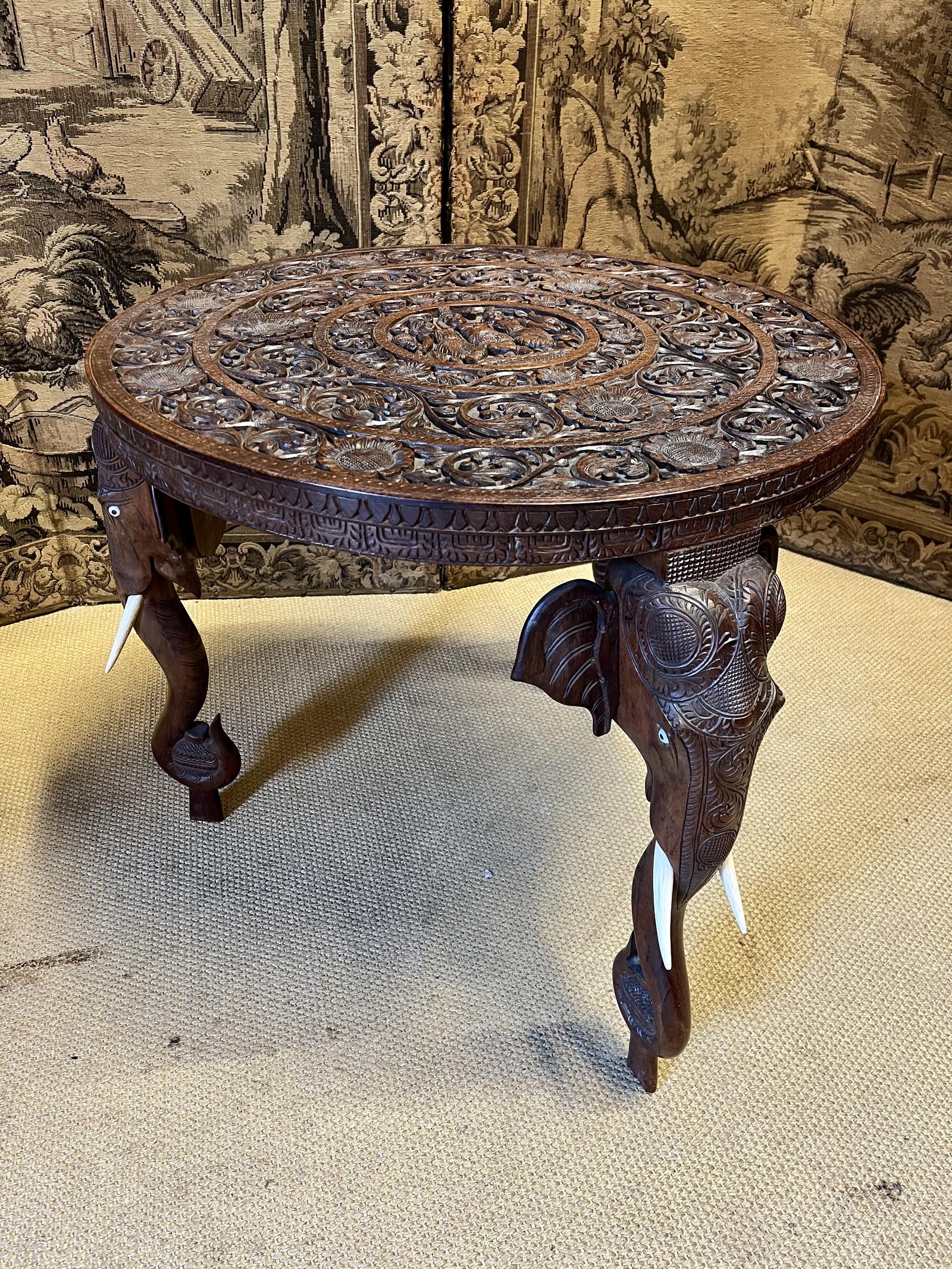 This is a very good example of a 19th Century antique carved elephant table, with bone tusks (not ivory) and in good original condition.