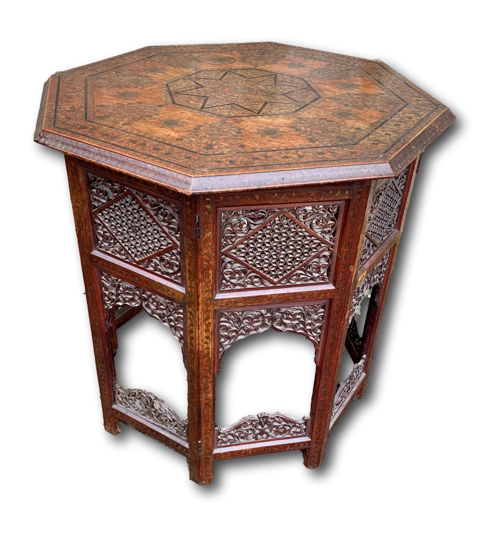 19th Century Carved Hoshiarpur Table With Brass Inlay