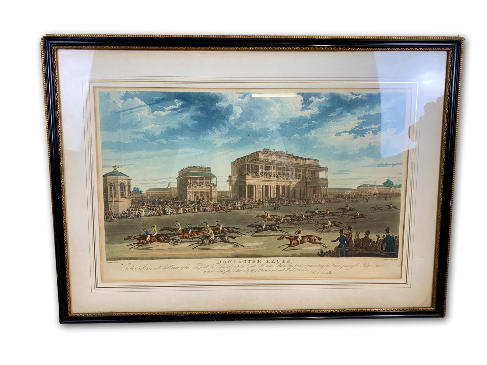 A superb quality 19th C (1890) coloured engraving depicting Doncaster Racecourse.