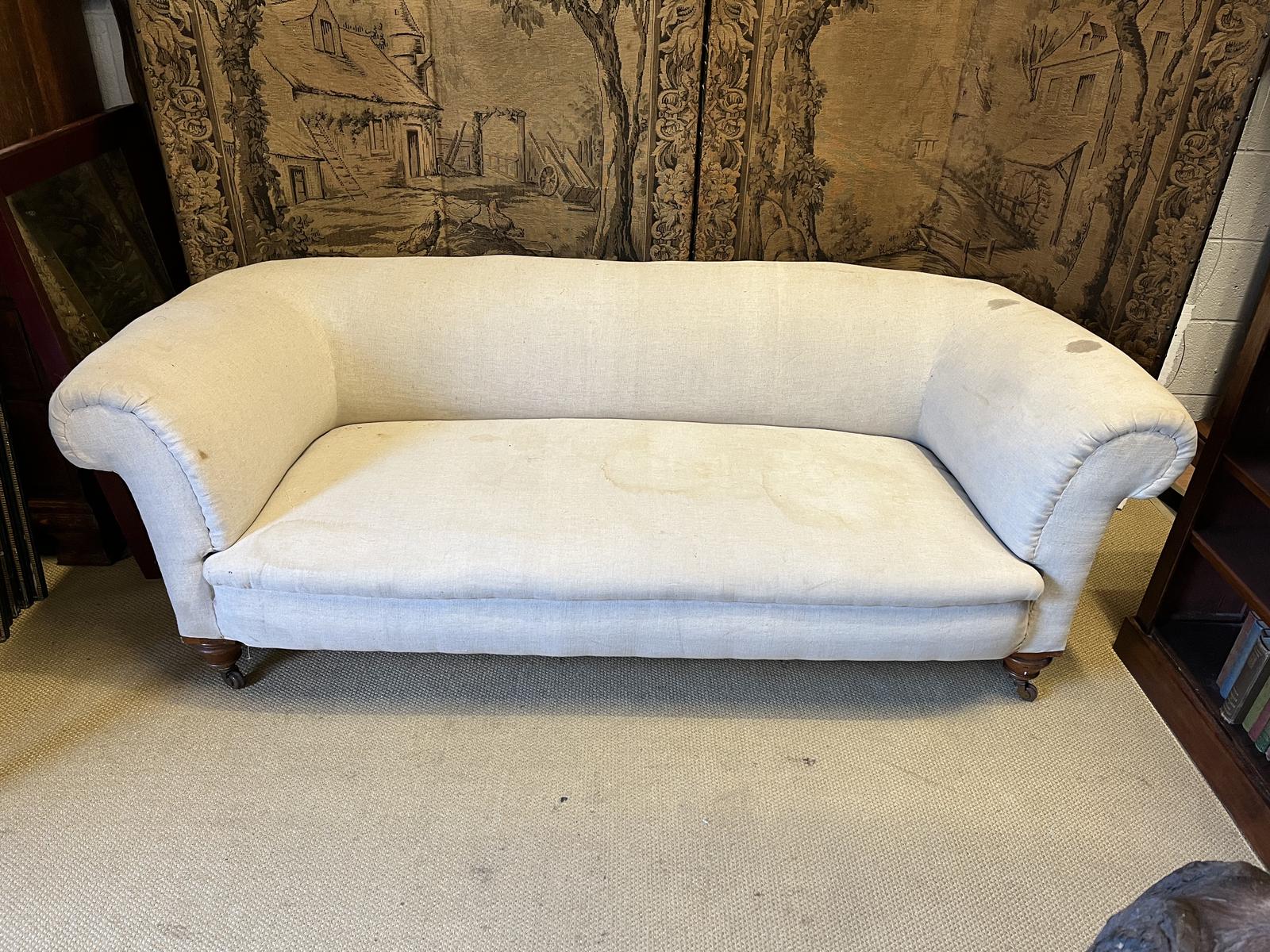 Structurally the settee is in excellent condition, but would benefit from a recover.