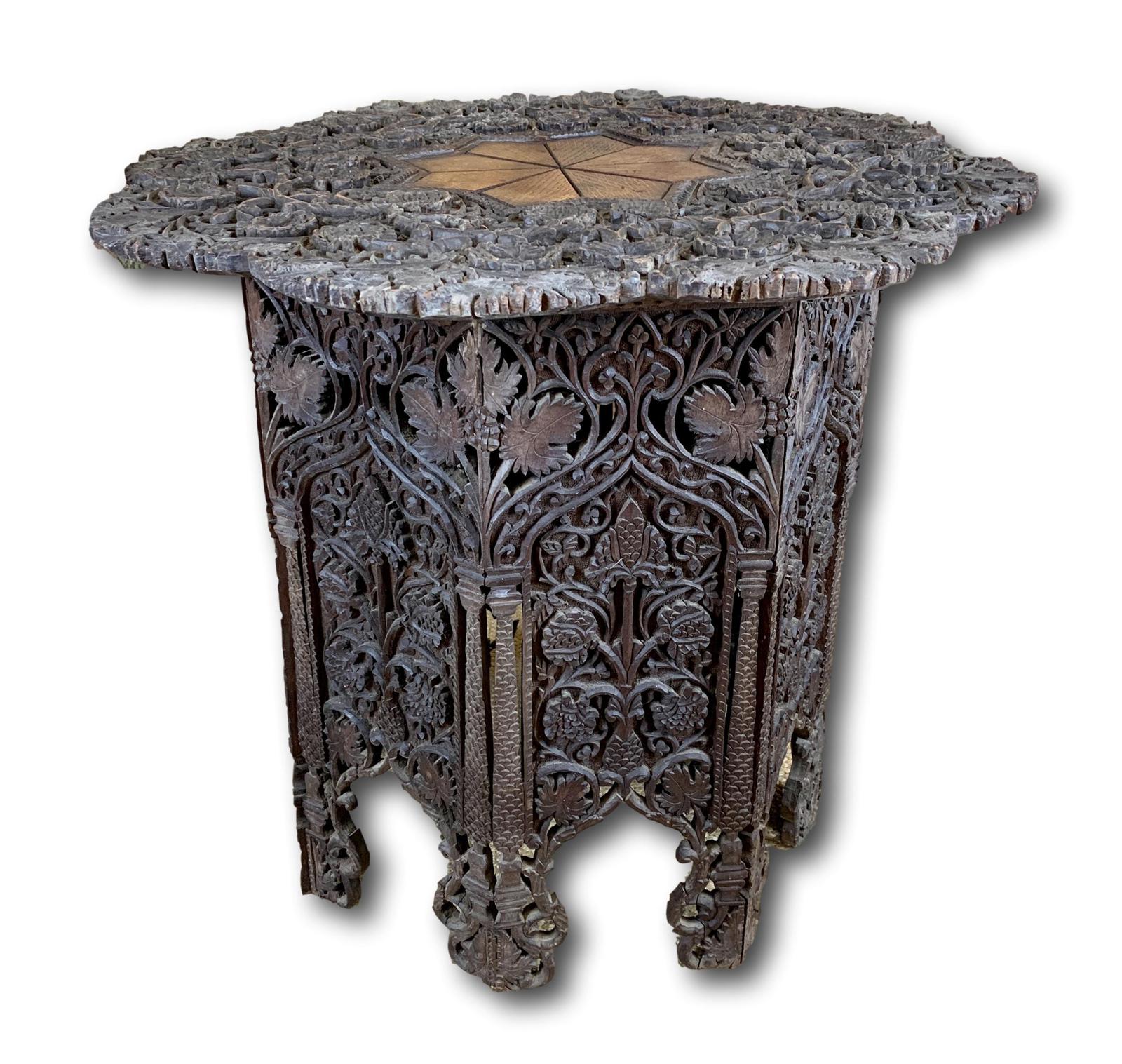 A highly decorative Indian carved occasional table.