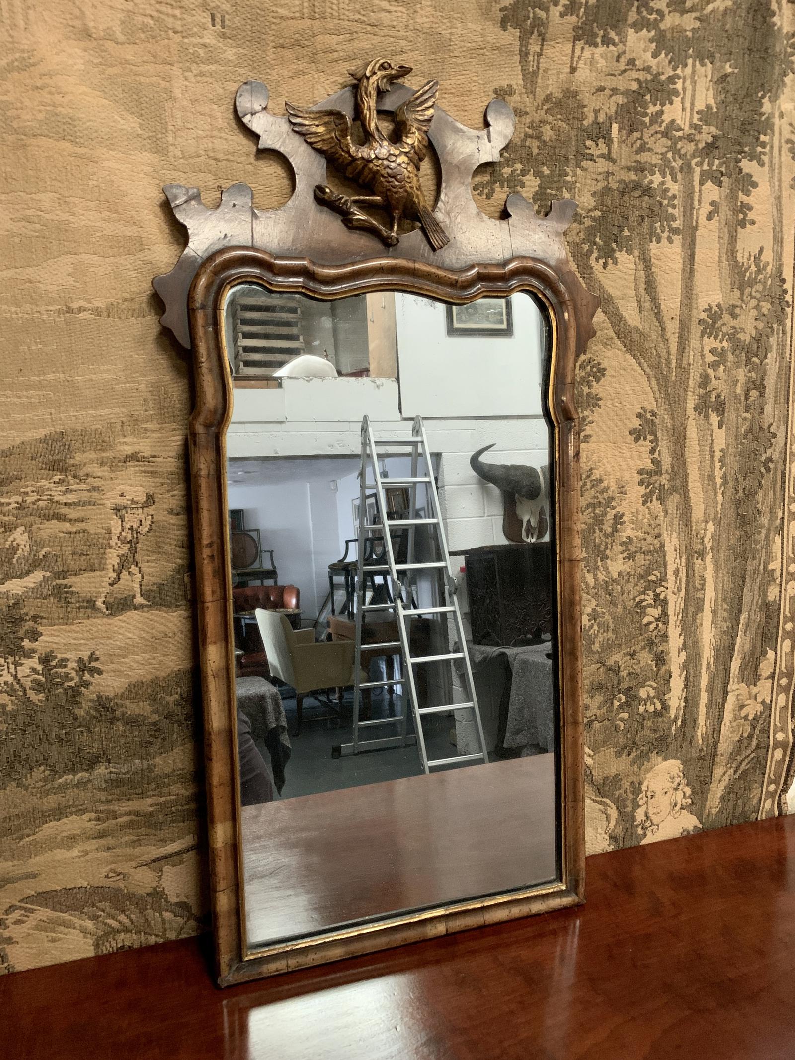 19th Century Mahogany Wall Mirror with Eagle Decoration