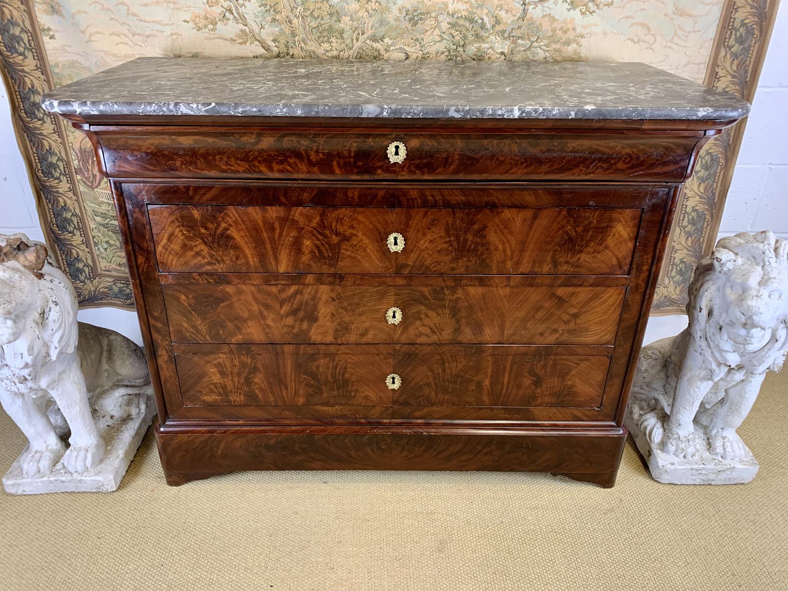 Made from beautiful flame Mahogany timber and with its original grey fossil marble top.