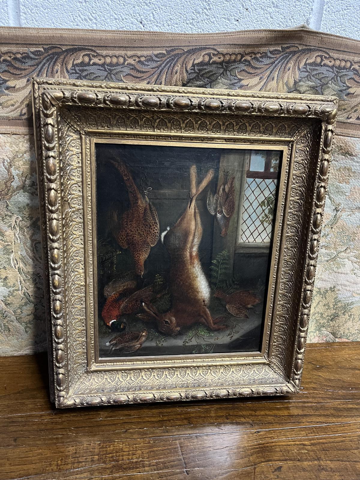 This is a very good quality 19th Century antique oil on canvas in very good quality gilt frame. Showing a game scene.
