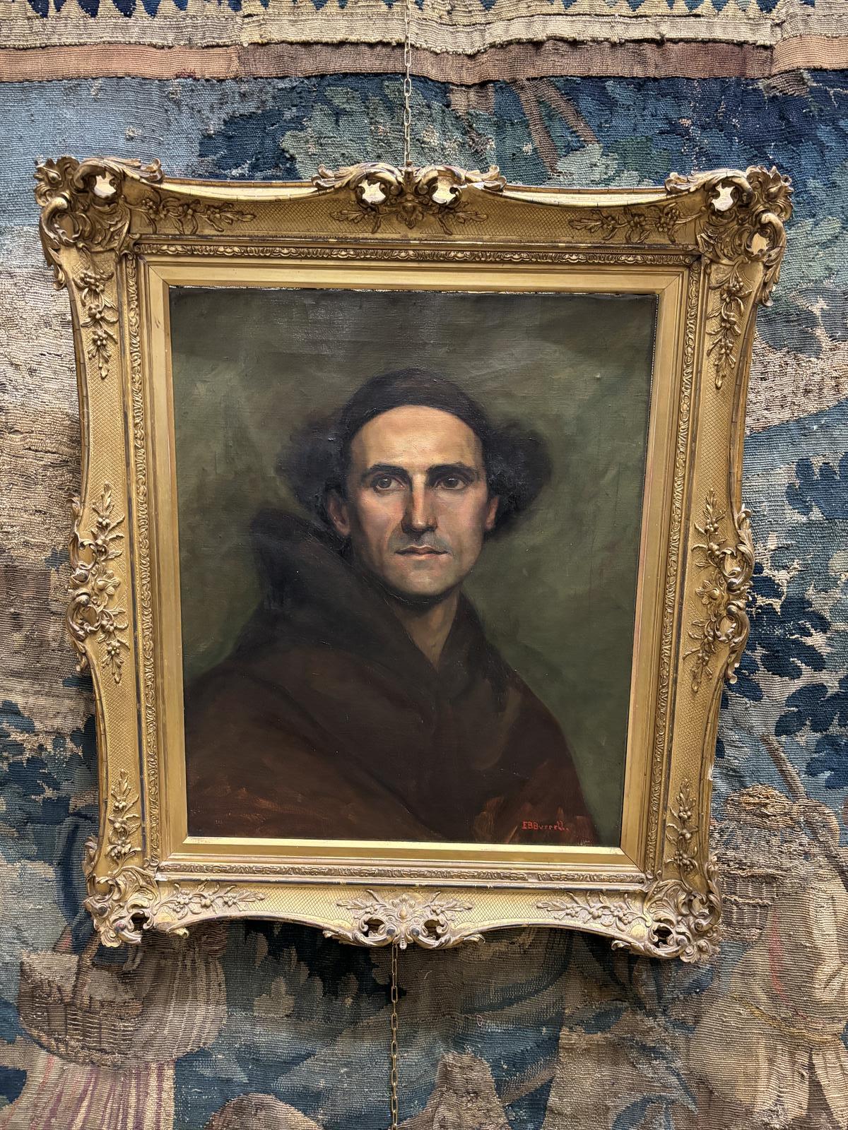 19th Century Oil on Canvas Portrait of Monk in Gilt Frame