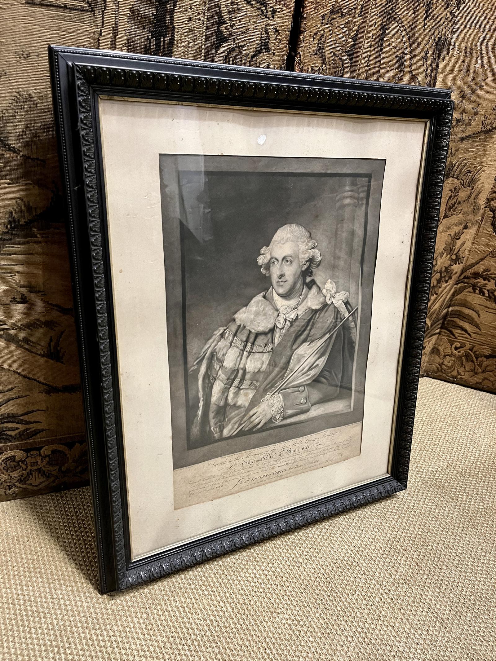 This is a very good quality 19th Century antique portrait engraving in a carved frame. Showing The Duke of Manchester.