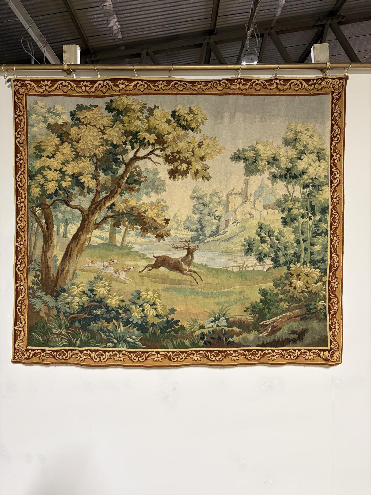 A very good quality 20th century woven tapestry showing a hunting scene, in good condition.