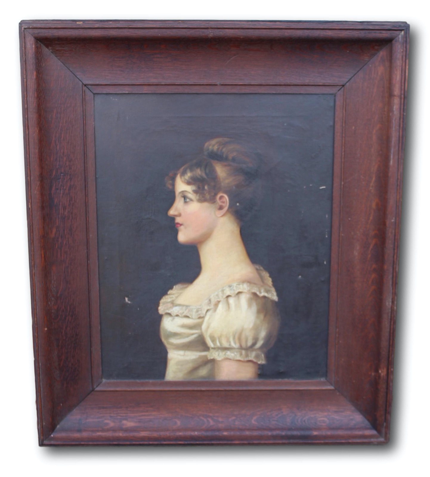A beautifully painted portrait of a young lady in original mahogany frame.