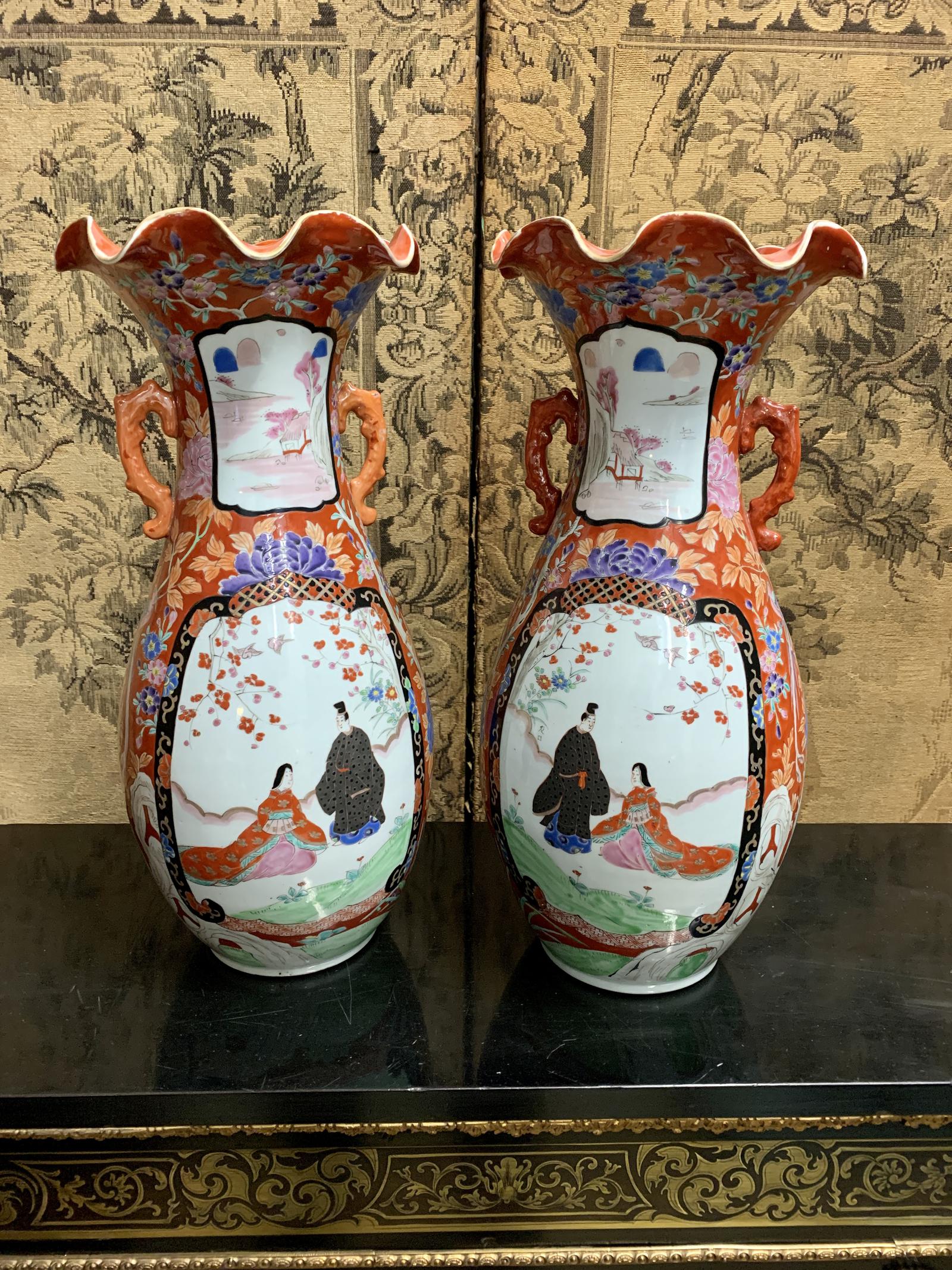 These are a stunning pair of 19th Century Japanese Imari antique vases., on a grand scale and painted in vibrant colours. No damage.
