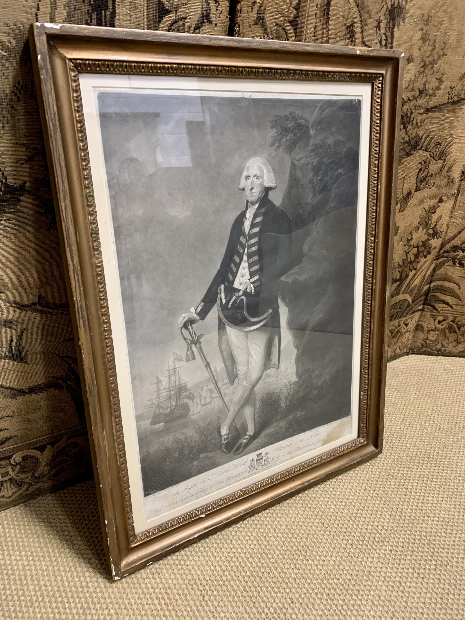 Very good quality early 19th Century (1810) antique portrait engraving of Lord Hood. In good quality gilt frame.