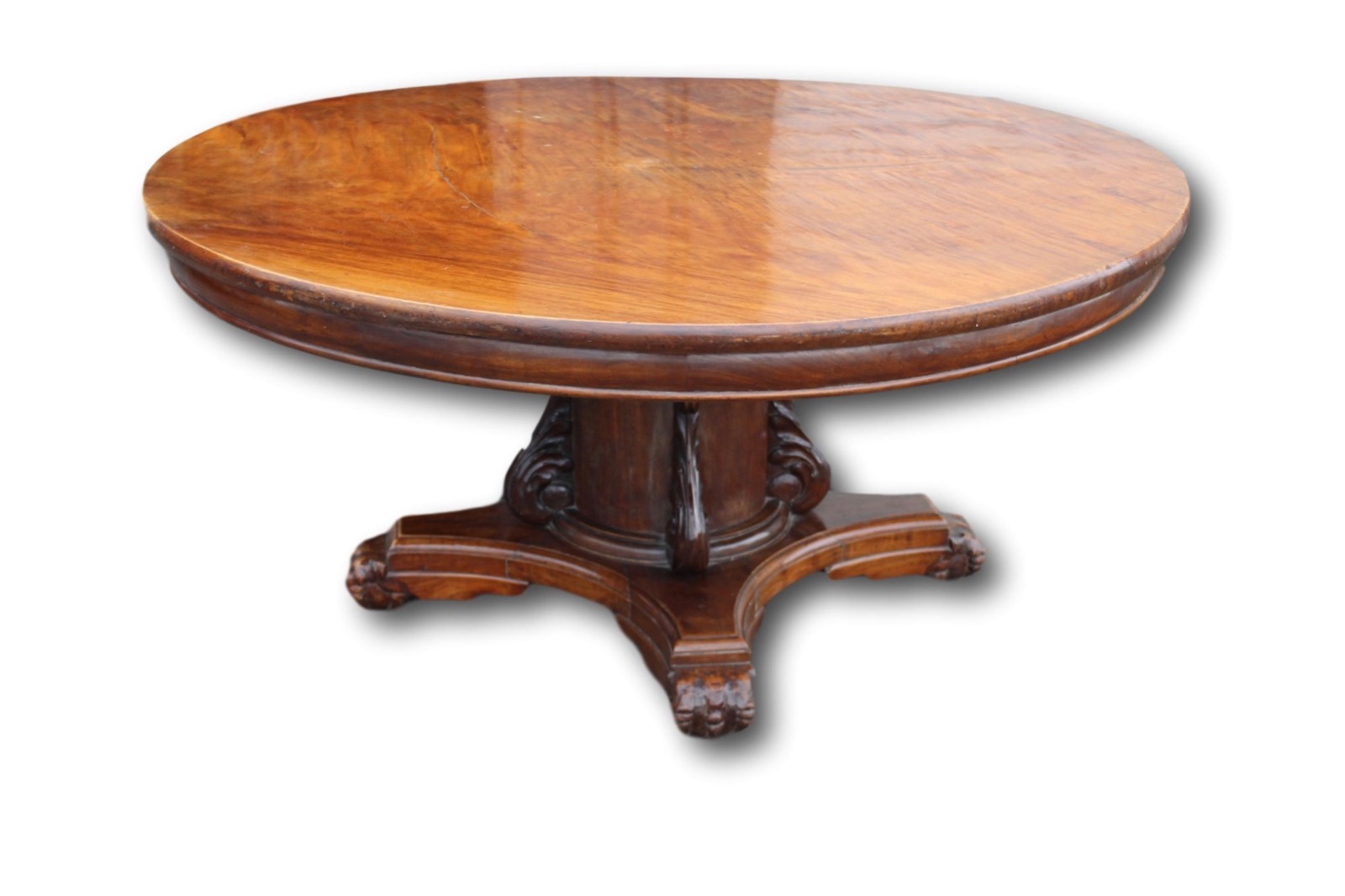 The top has warped slightly and there is a crack in the top (shown in photos). The feet which are carved in a 'ball and claw' design have been worn. All of this just adds to this oversized pieces rustic appeal.