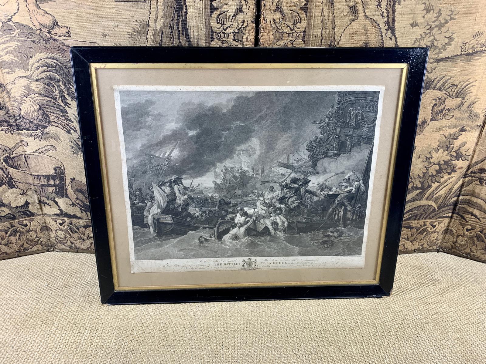 Superb quality engraving of The Battle At La Hogue in ebonised frame.