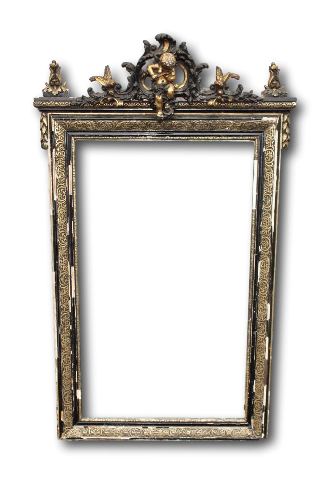 Ebonised & Gilt Framed Overmantle Mirror with Cherub Decoration