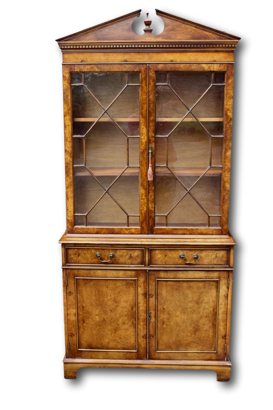 This is a very attractive 'Edwardian style' burr walnut bookcase in excellent condition. Made with excellent quality burr walnut timber and in very good condition with original key.