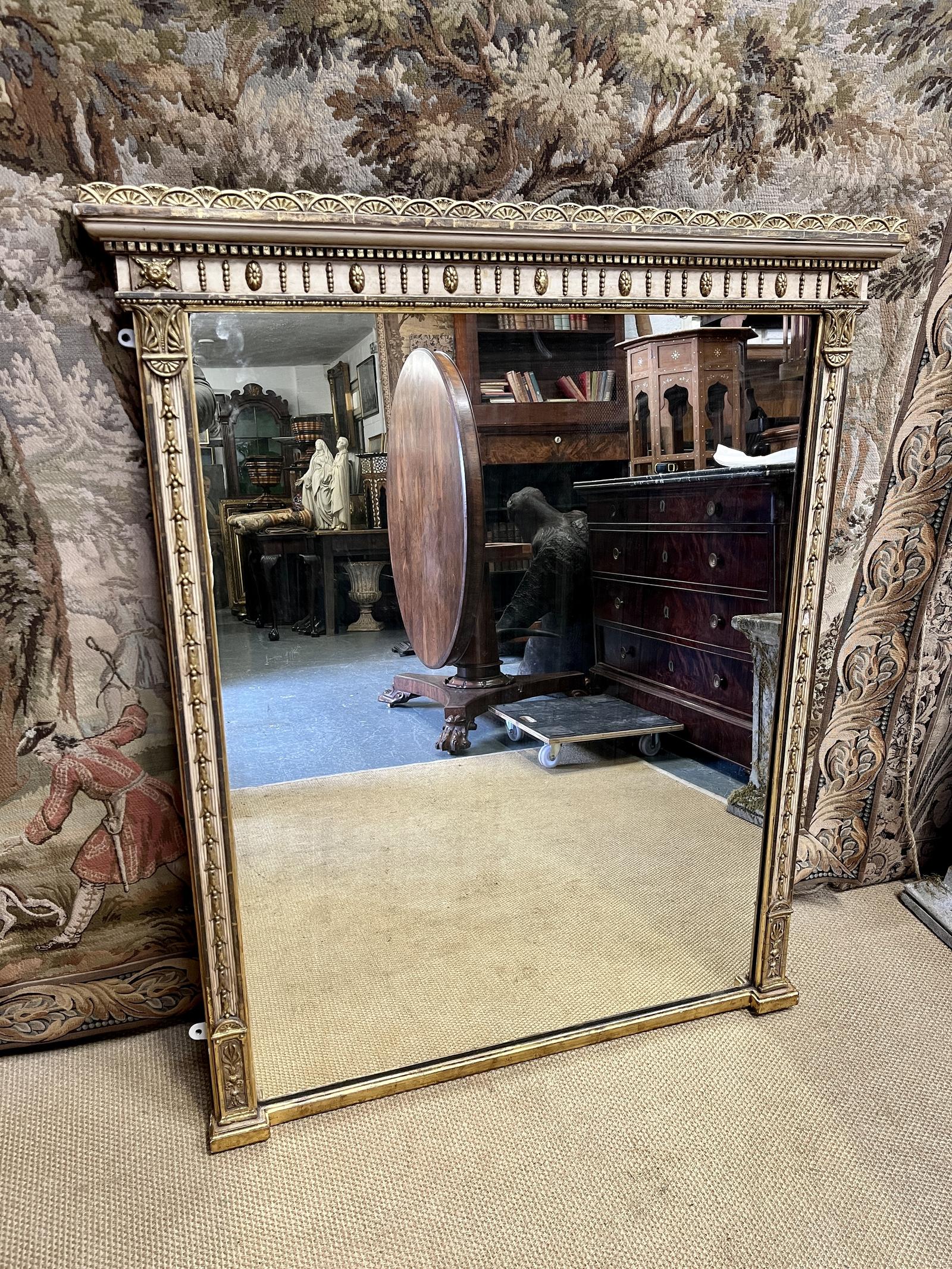 This is a superb quality English early 19th Century (1830) English antique overmantle mirror. Carved gilt decoration throughout. Overall condition is good and original with no losses.