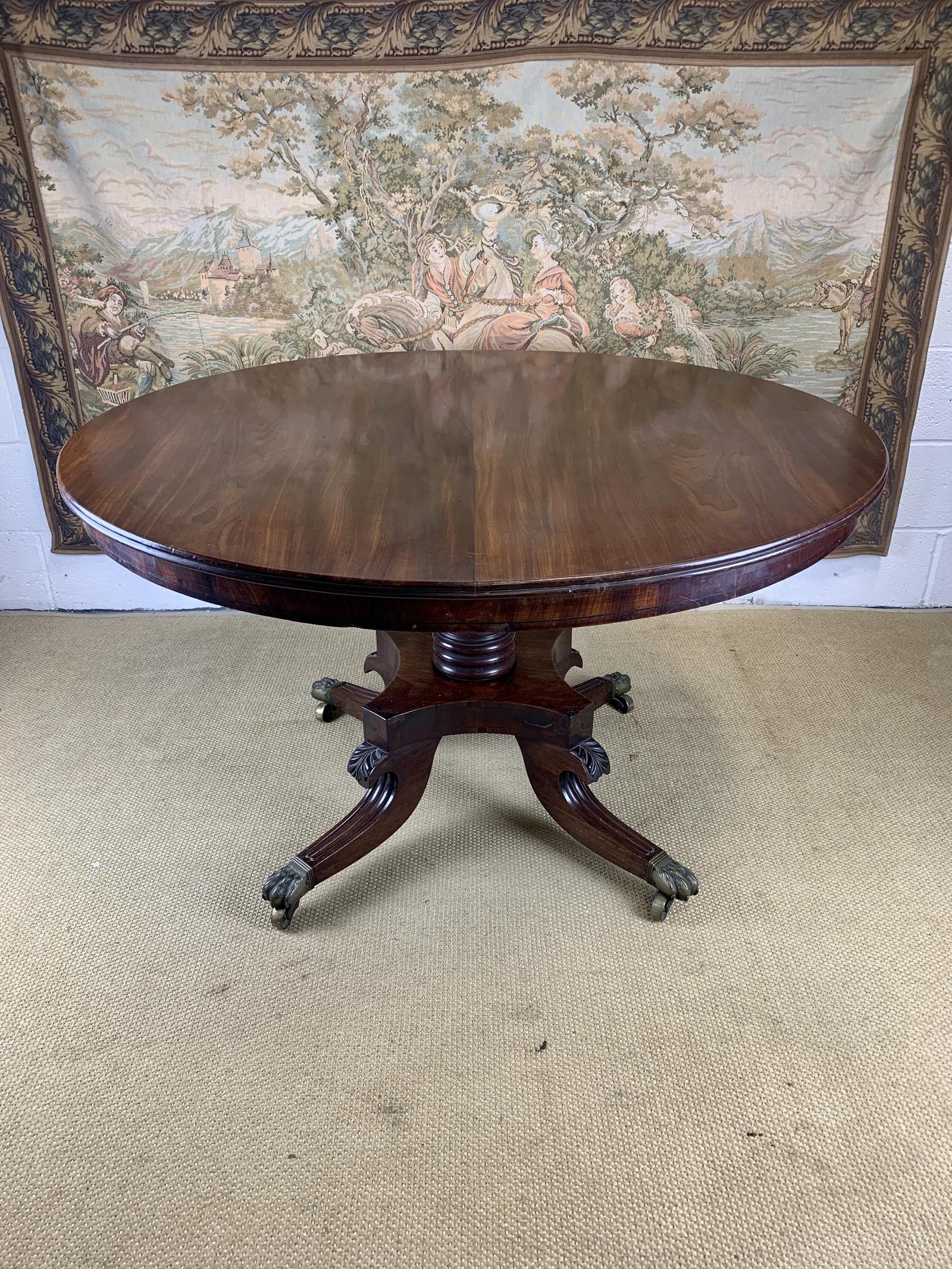 A very good quality English 19th Century antique mahogany tilt top centre table made from excellent quality timber and standing on original large brass casters.