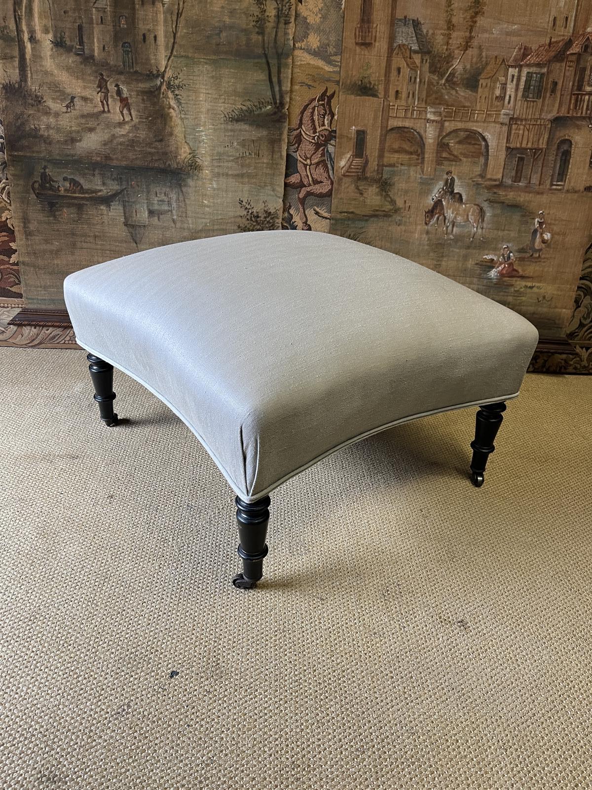 This is a good quality large English Country House footstool, standing on turned legs with casters.