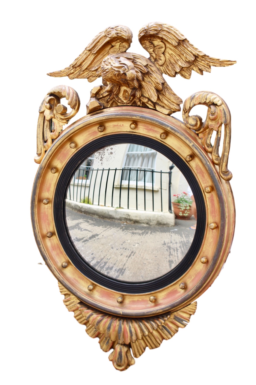 English Regency Antique Gilt Circular Mirror with Eagle Decoration c.1815