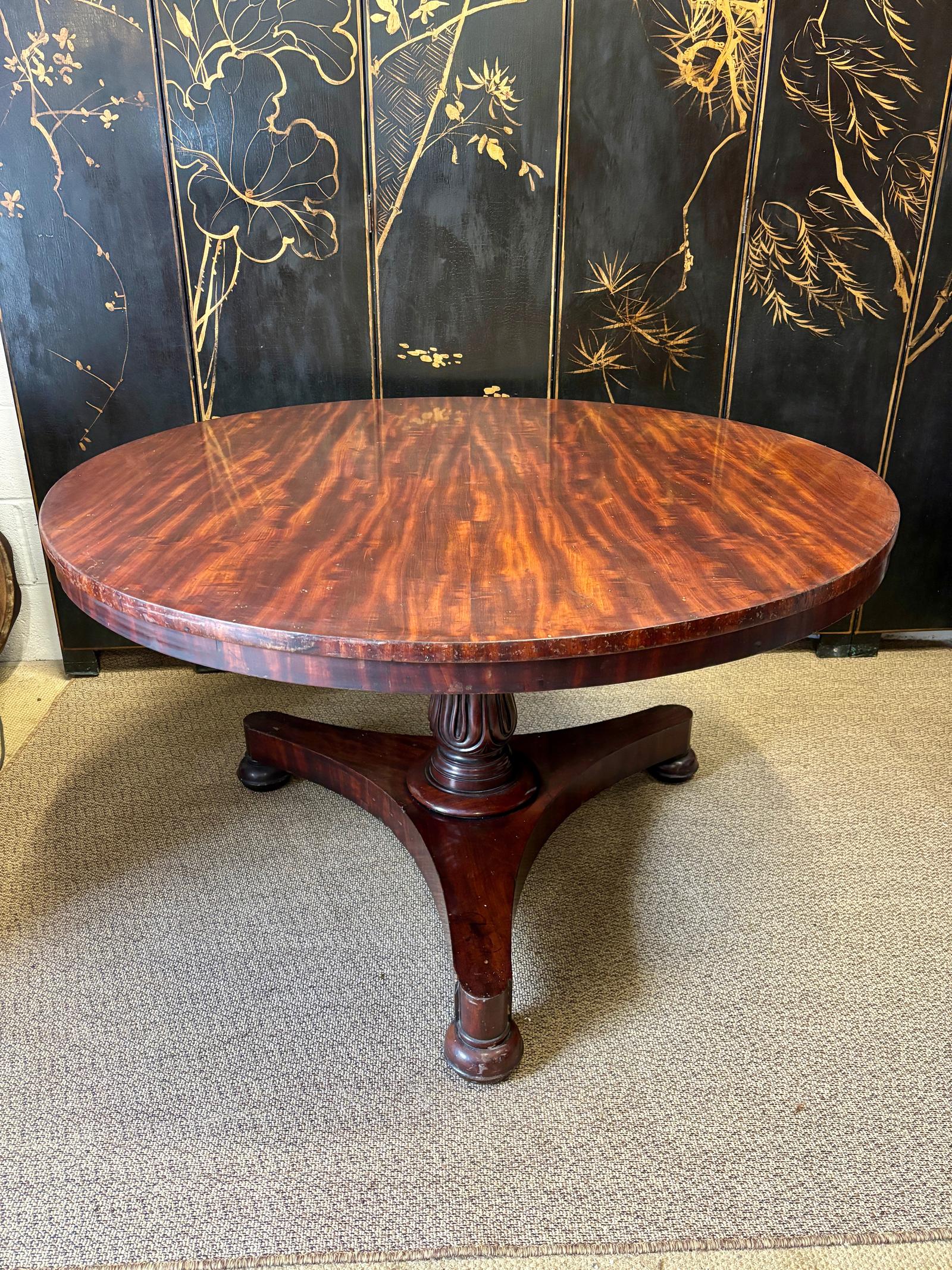 This is a very good quality early 19th Century (c.1815) English Regency antique mahogany centre table with carved base. In good overall condition, made from excellent quality timbers.