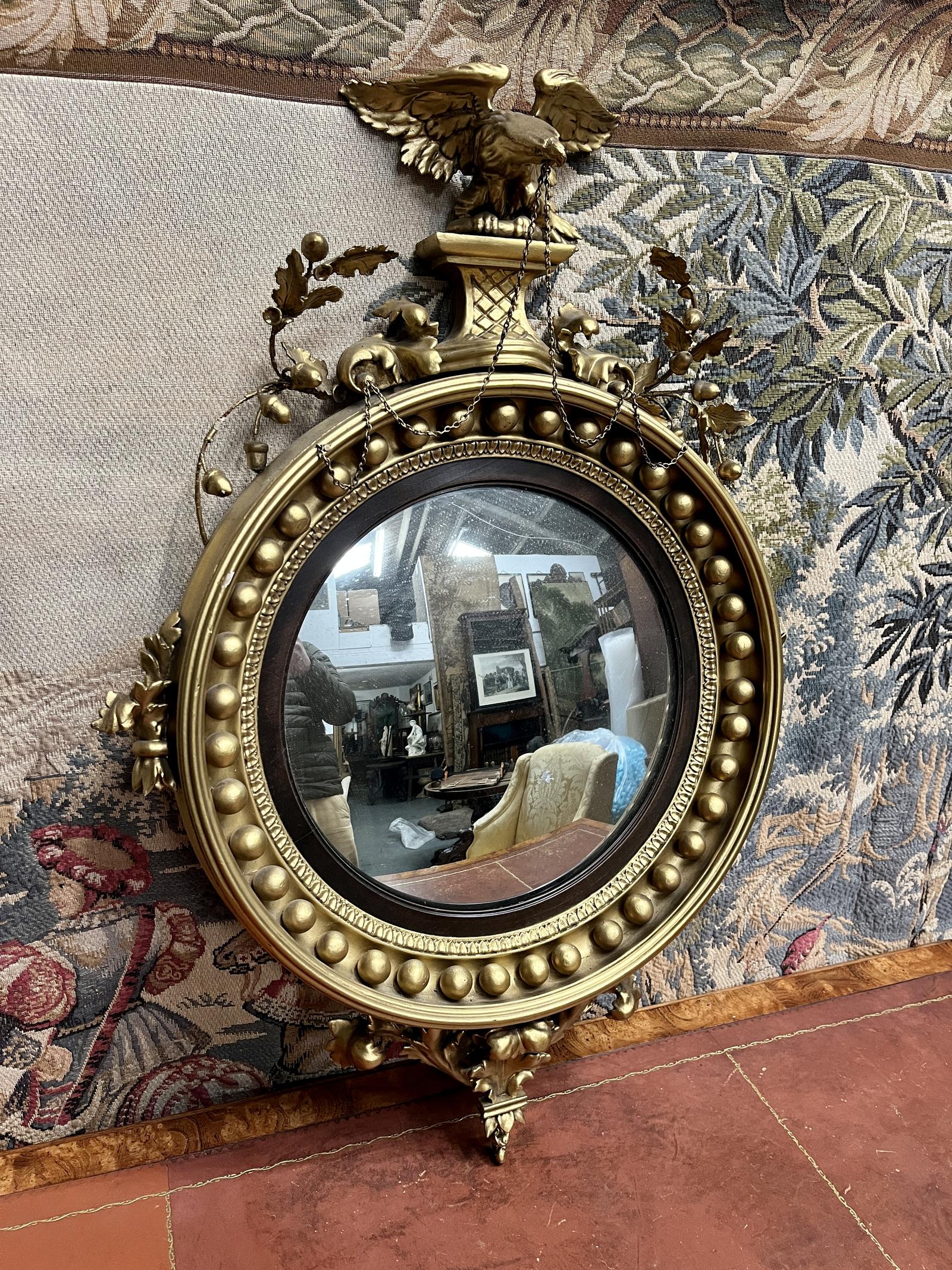Exceptional English Regency Convex Mirror With Eagle