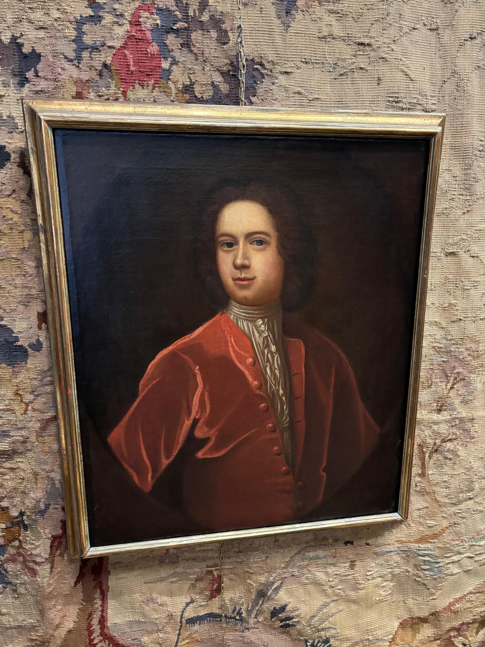 This is a superb quality 18th Century (1780) antique oil on canvas portrait showing a gentleman in red jacket and finely painted throughout.