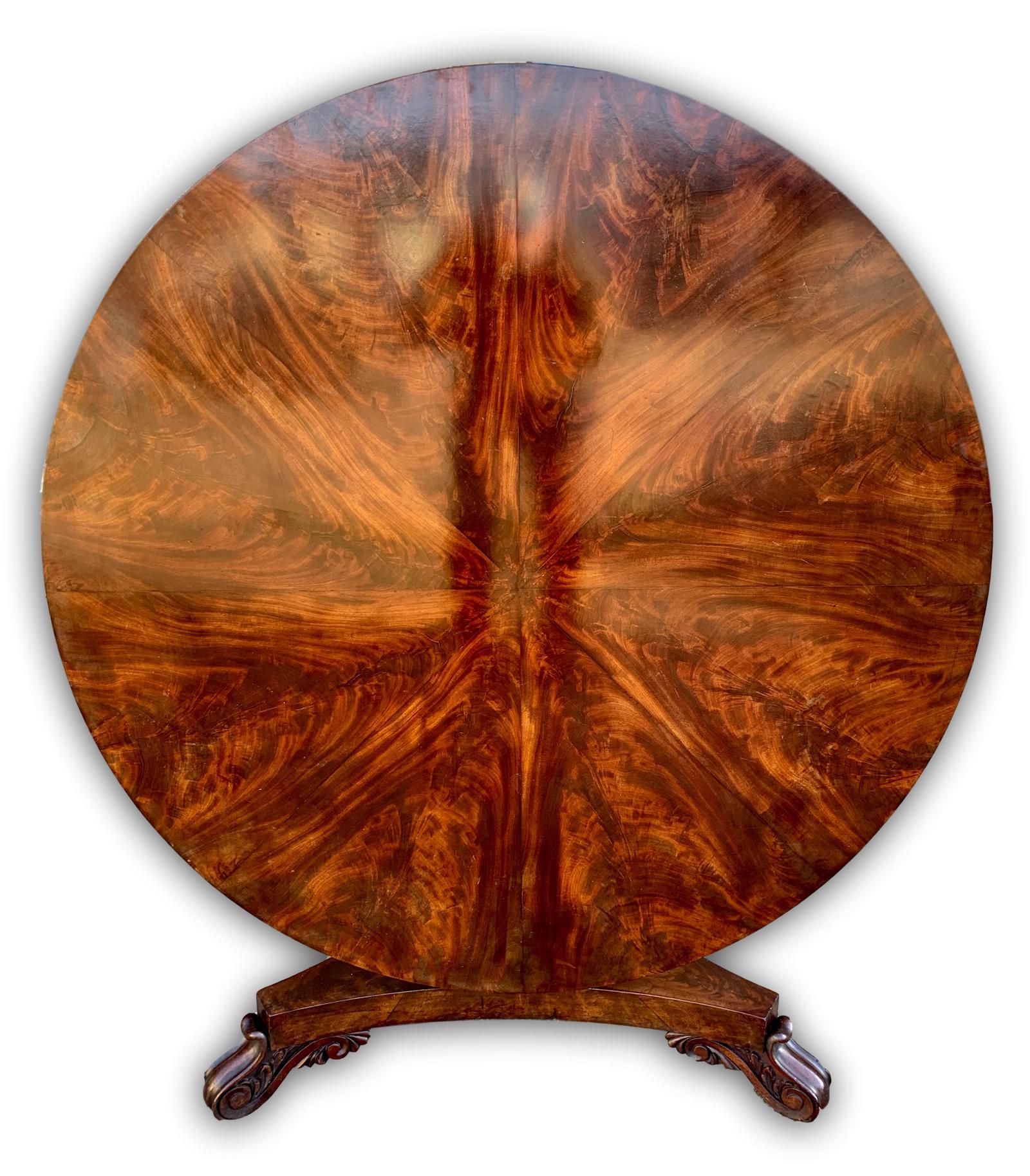 An exceptional English Regency (1815) Flame Mahogany centre table.