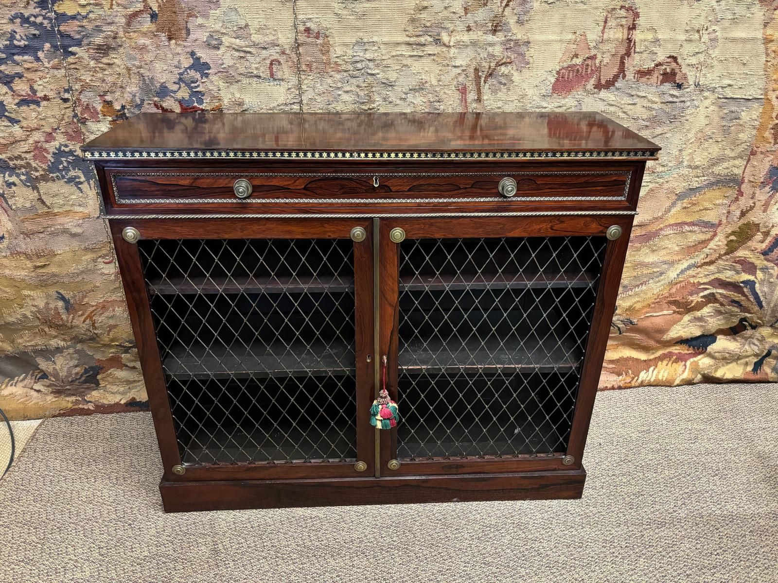 This is a superb early 19th Century (c.1815) English Regency antique rosewood bookcase with brass decoration throughout. In good original condition and made from finest quality timbers.