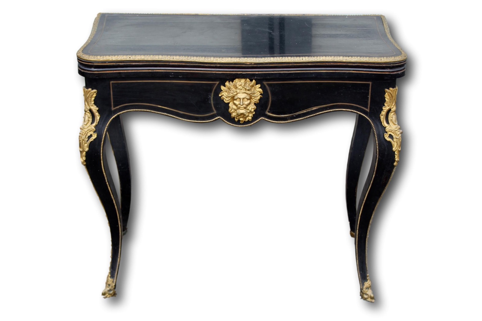 French 19th Century Ebonised Card Table with Brass Inlay & Ormolu Mounts