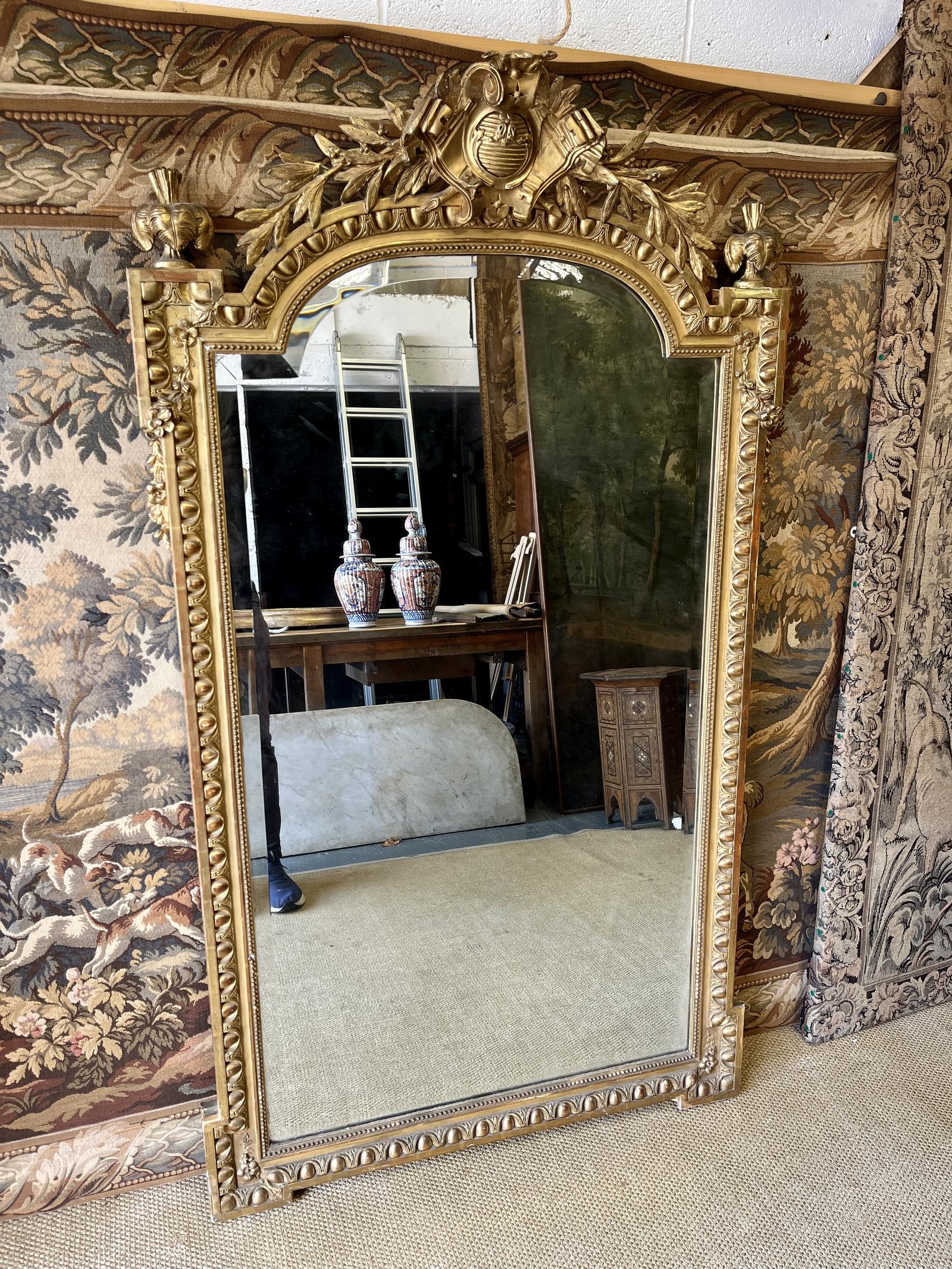 This is a stunning French late 19th Century (1880) antique carved wall mirror on an excellent scale and in good condition, with original bevelled glass mirror plate.