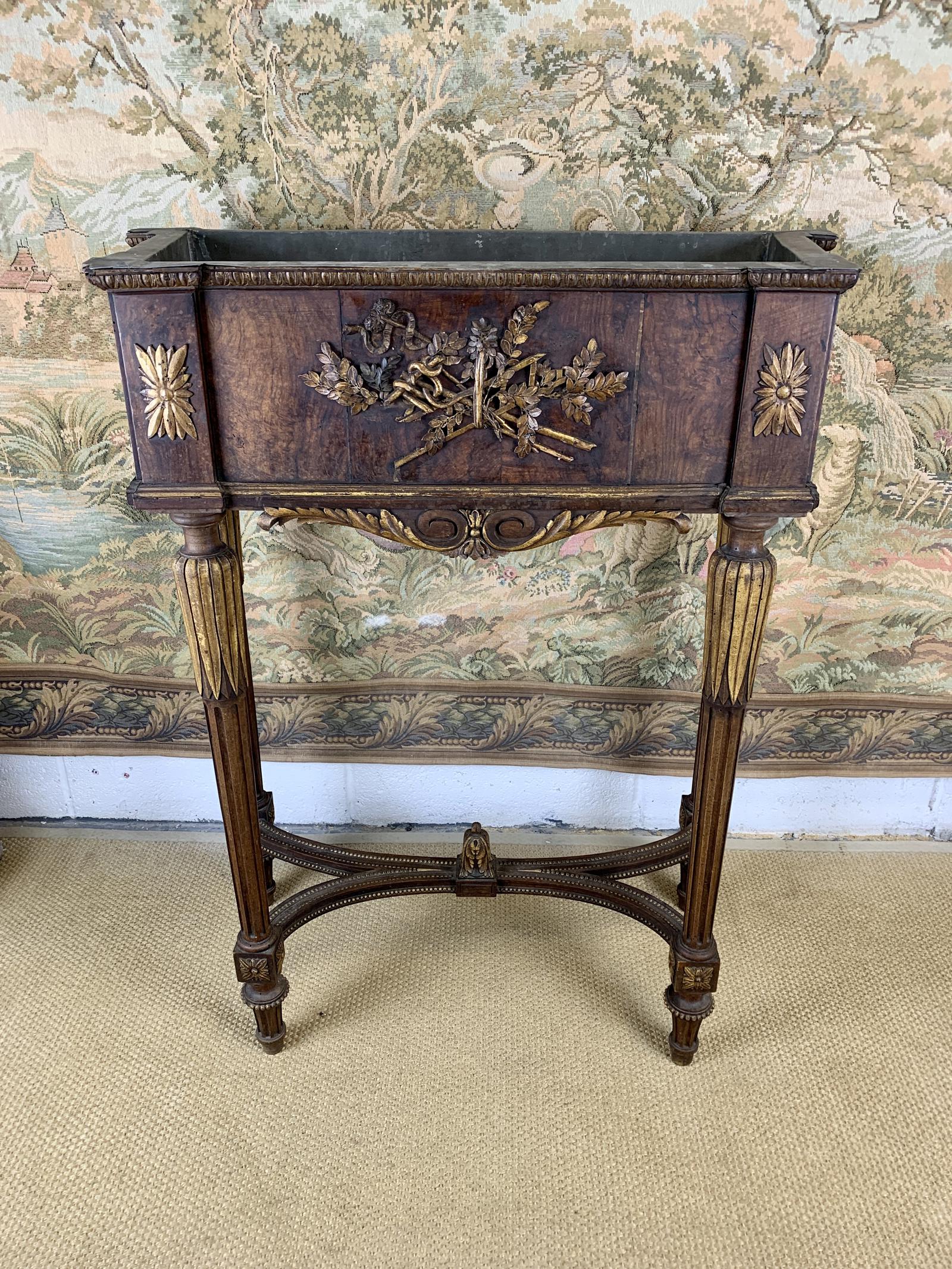 French Early 19th Century Walnut Jardiniere with Gilt Decoration