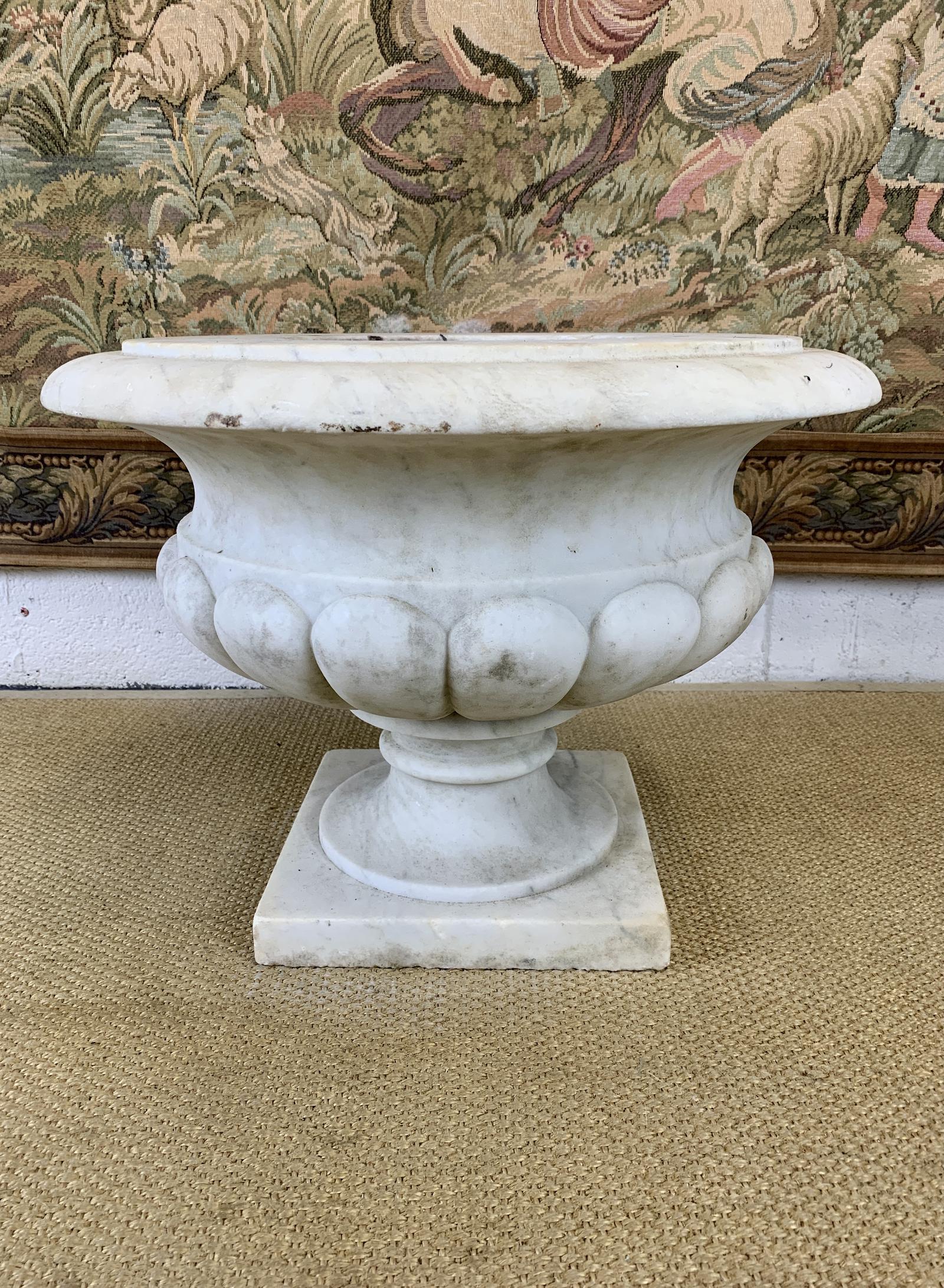 A stunning French solid marble urn on a grand scale and beautifully carved. It was made around 1900 and in good condition with no significant chips or losses.