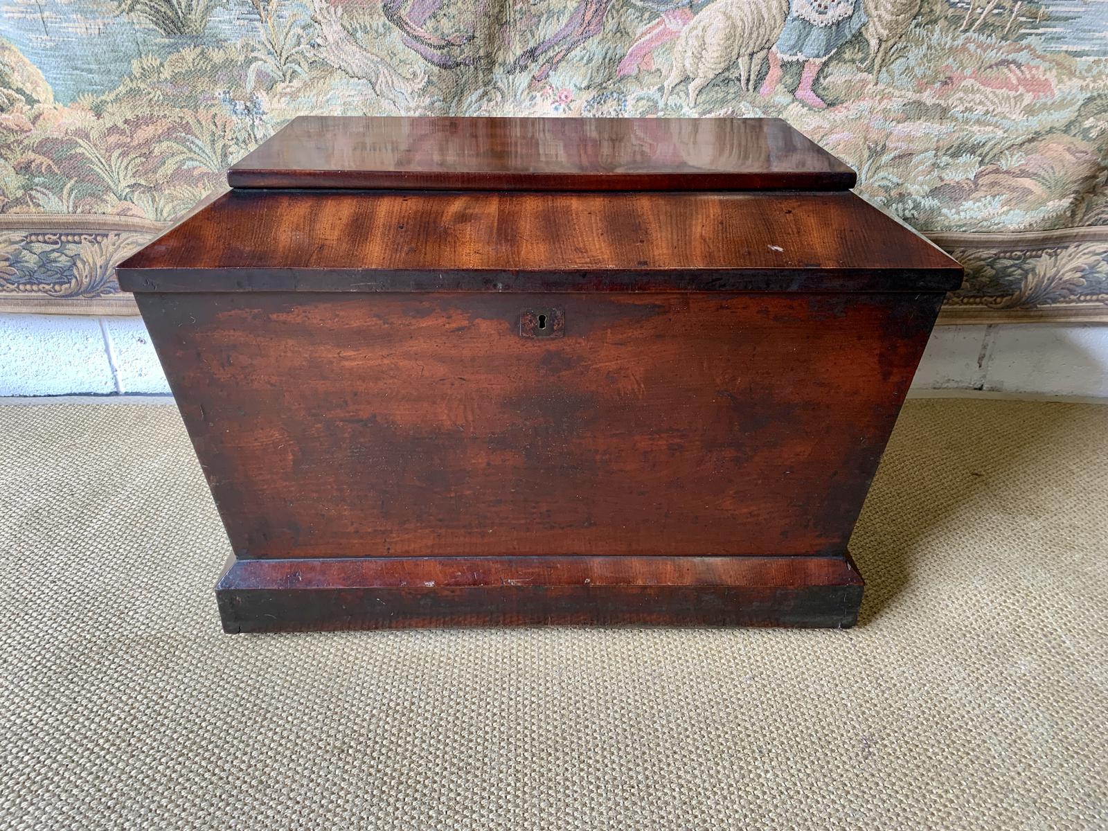 A fabulous 18th Century Georgian antique mahogany cellarette. The lid lifting to reveal original lead lining. Also standing on four original brass casters.