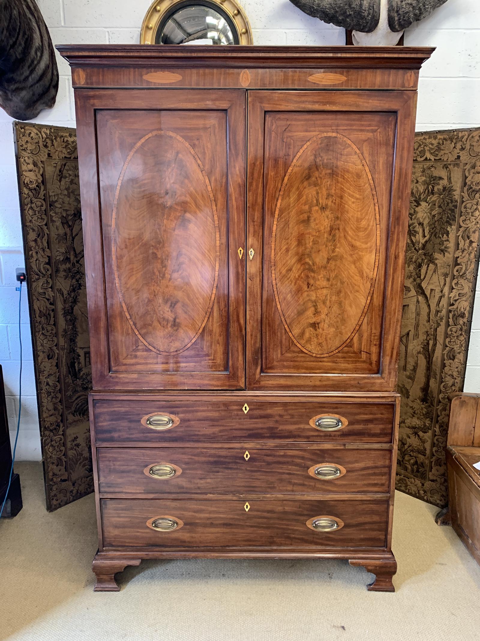 Georgian Mahogany Wardrobe with Satinwood Inlay c.1790