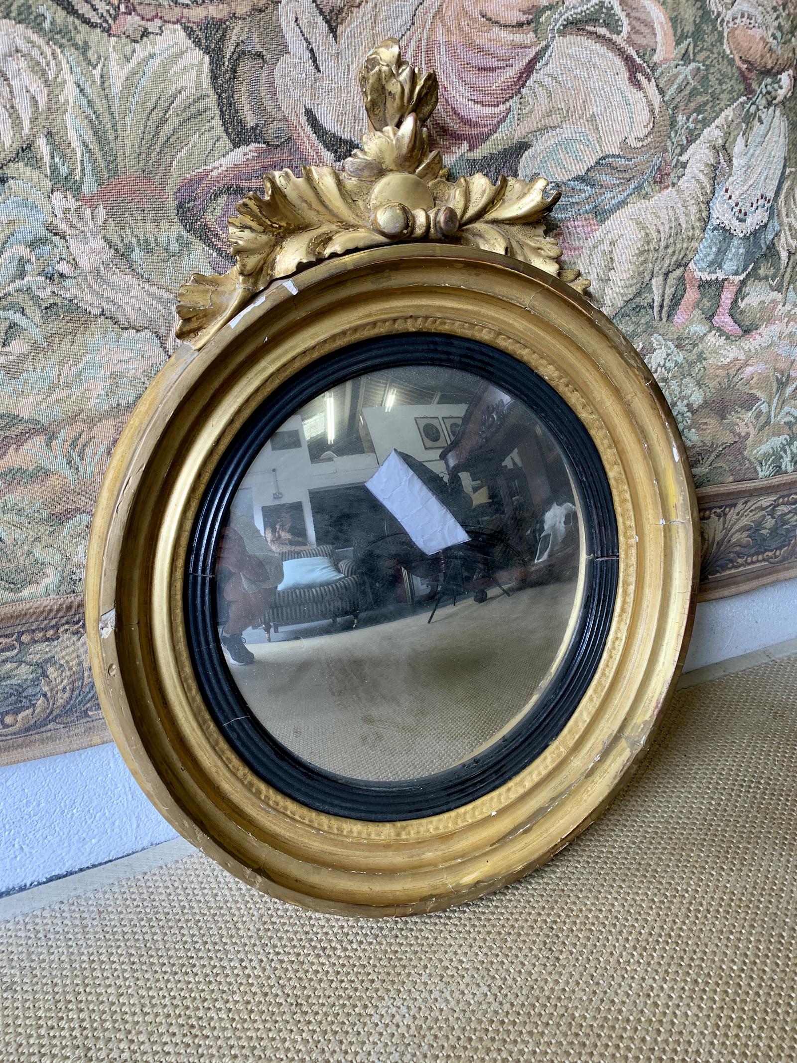 A very attractive 19th Century antique giltwood convex mirror.