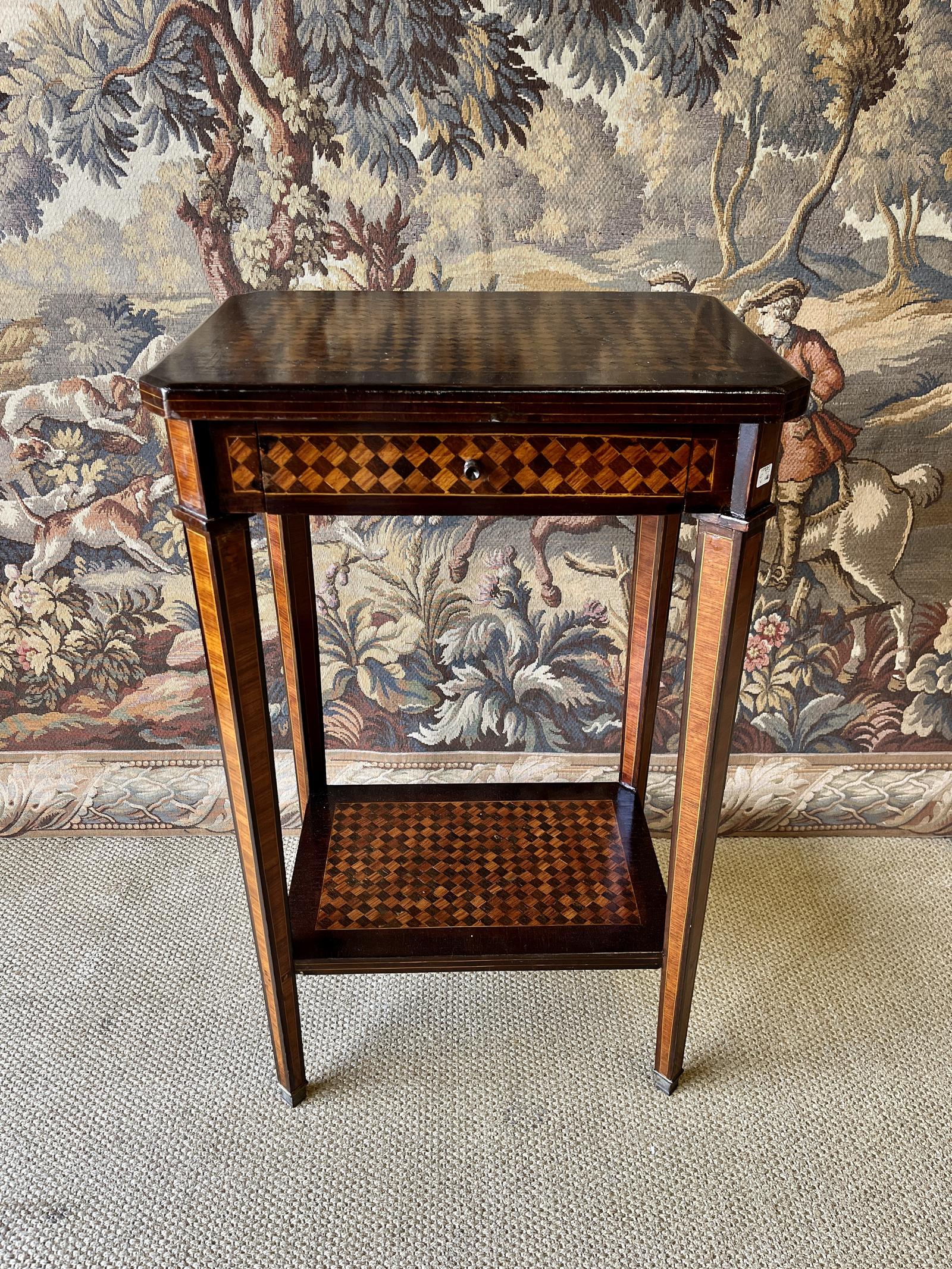 This is a stunning Italian occasional table on square tapering legs with single drawer to the front. Dating to around 1920 and in good original condition.