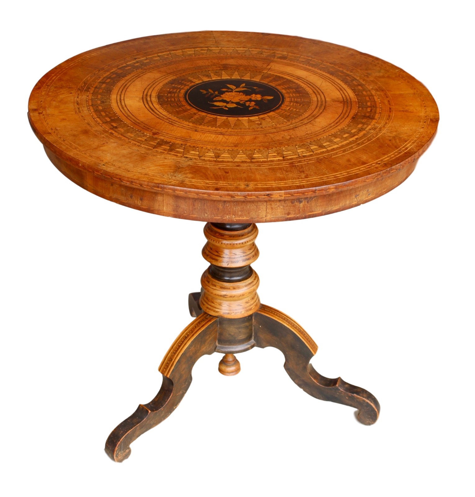 This is a beautiful 19th Century Italian antique centre table made from walnut with parquetry and floral inlay.
