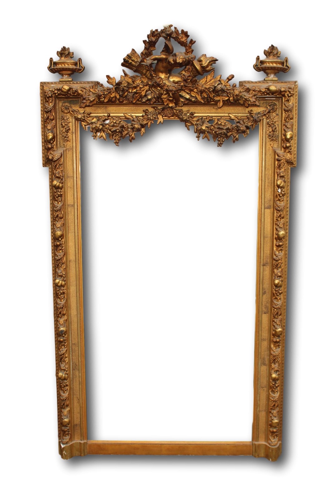 Large 19th Century French Gilt Mirror with Decoration Standing 5Ft 6 High