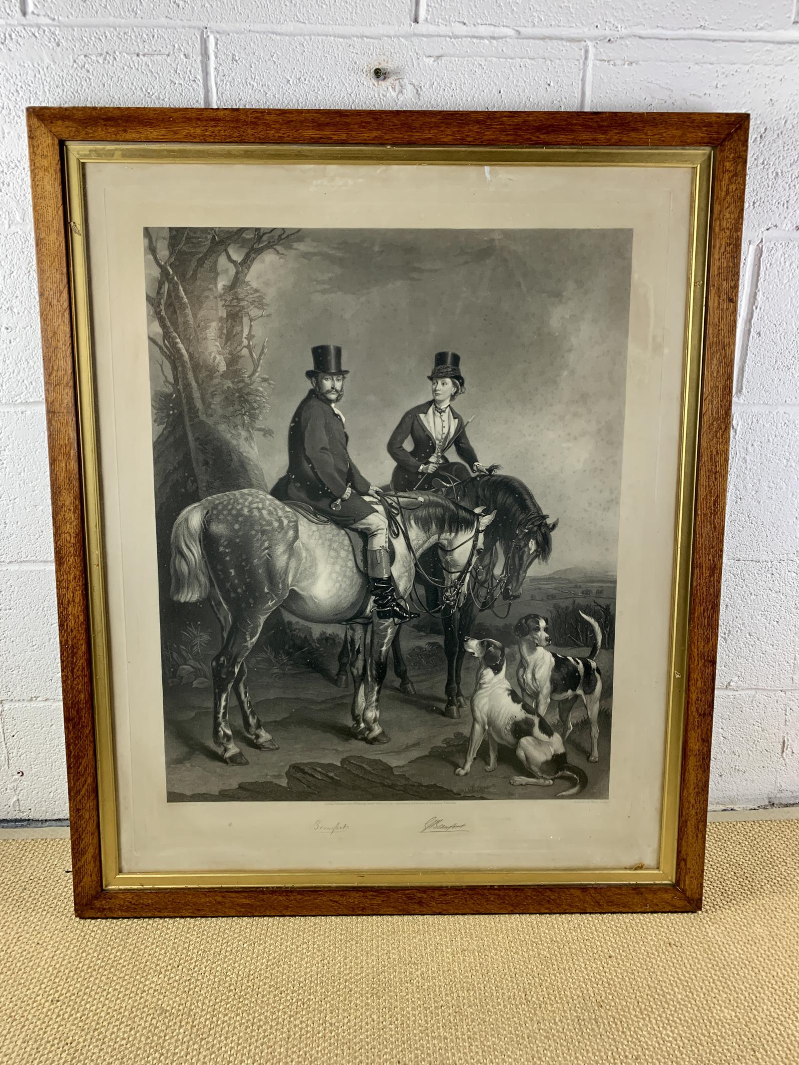 A super quality, very large framed print of a couple riding with hounds. The man is Henry Charles Fitzroy Somerset, 8th Duke of Beaufort.