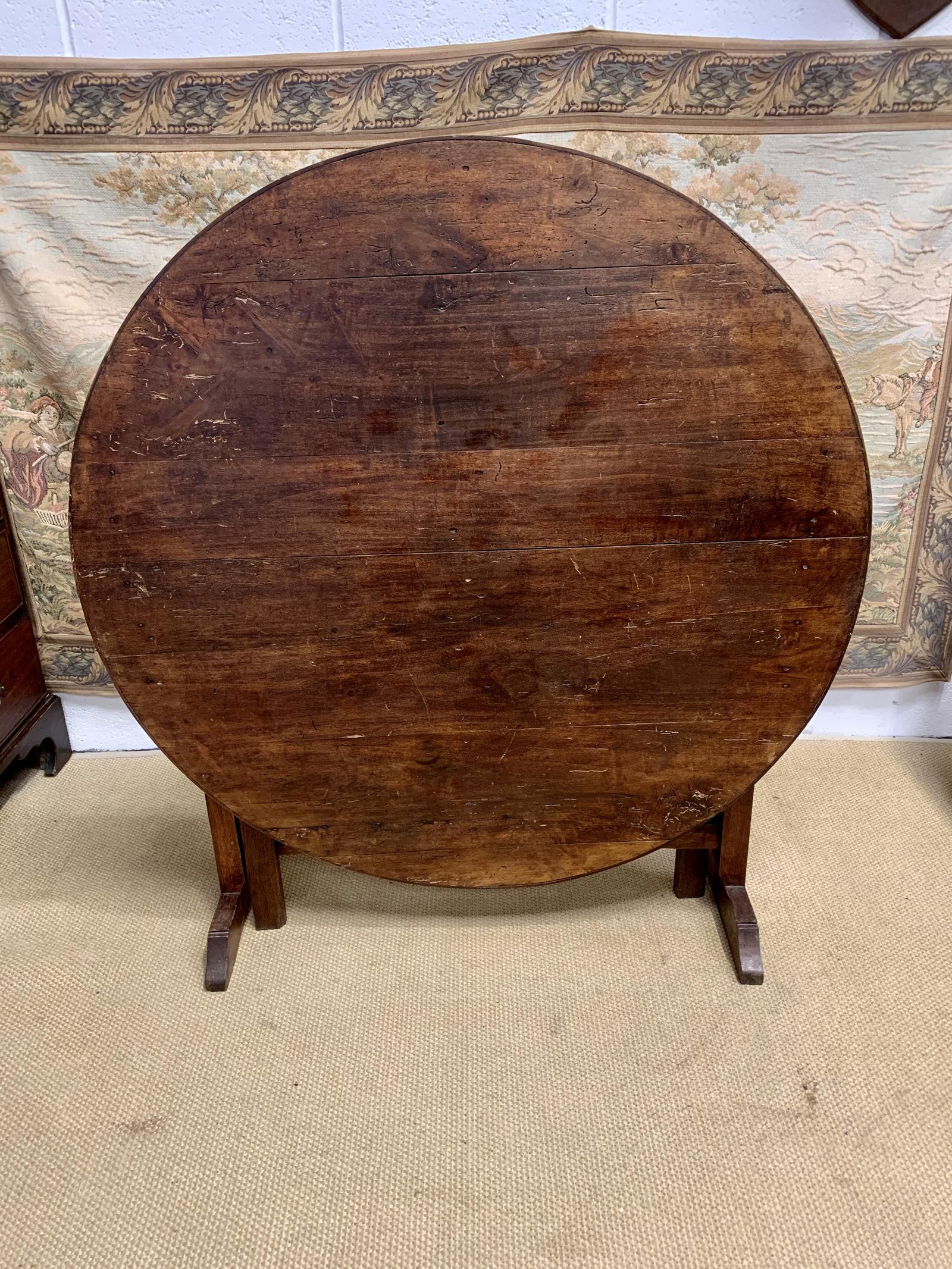 This is a superb French Vendage antique table made around 1900 and an excellent colour. The top tilts so these tables can be stored when not in use.