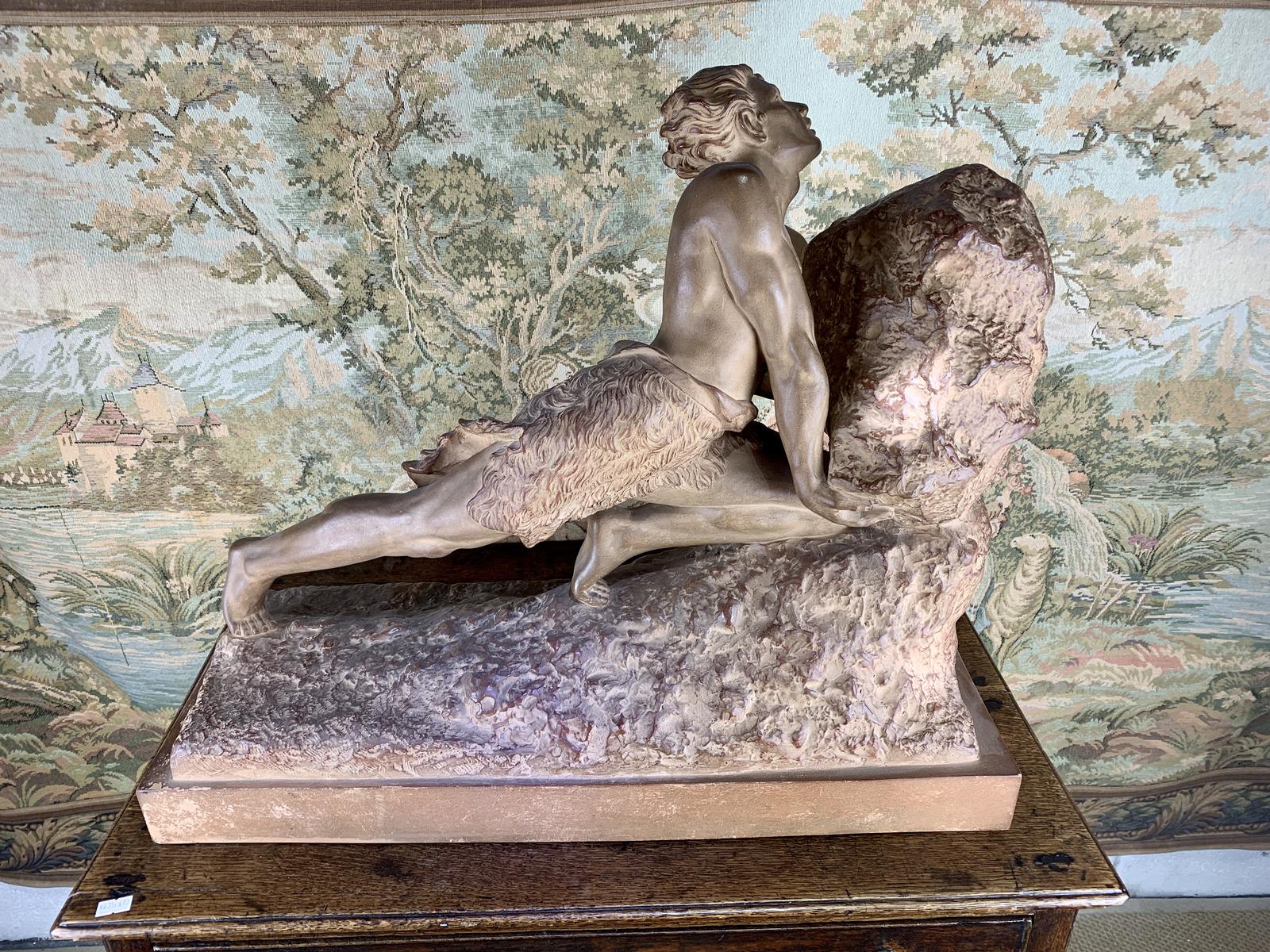 A stunning large terracotta sculpture by Émile Grégoire (1871–1948). On a grand scale and in excellent condition.