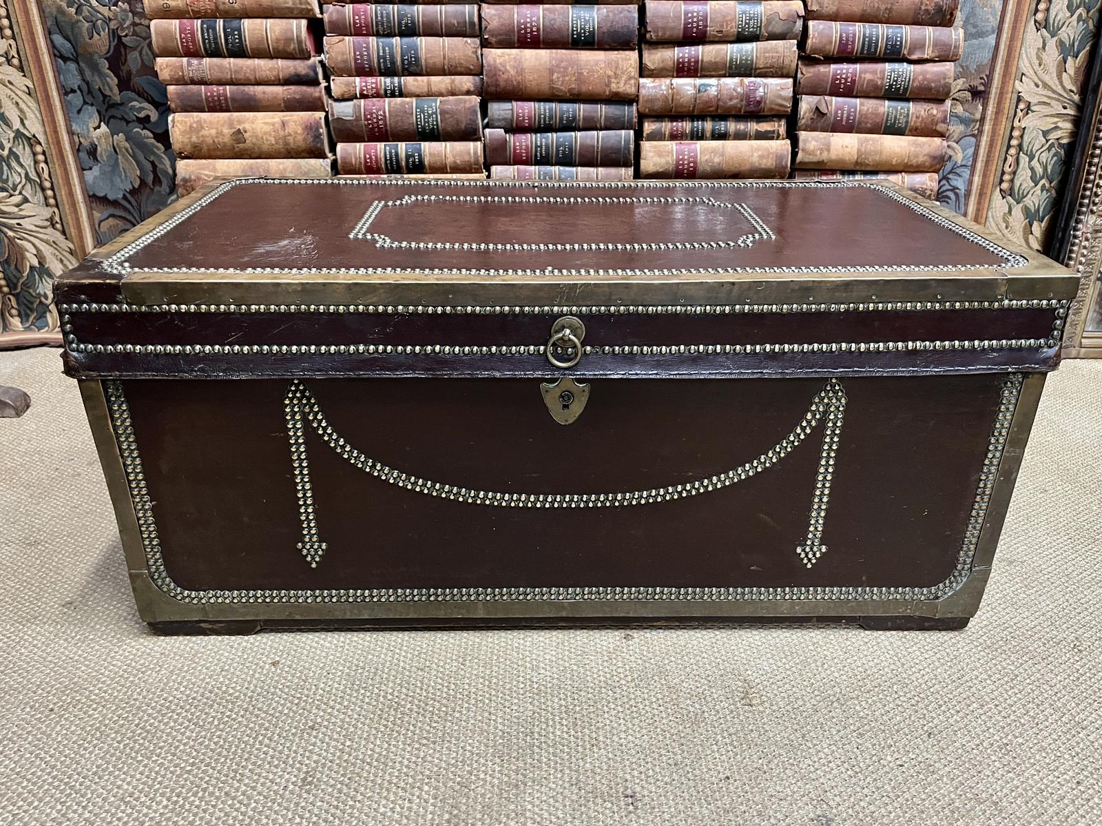 Leather & Brass Bound Camphor Wood Officers Trunk