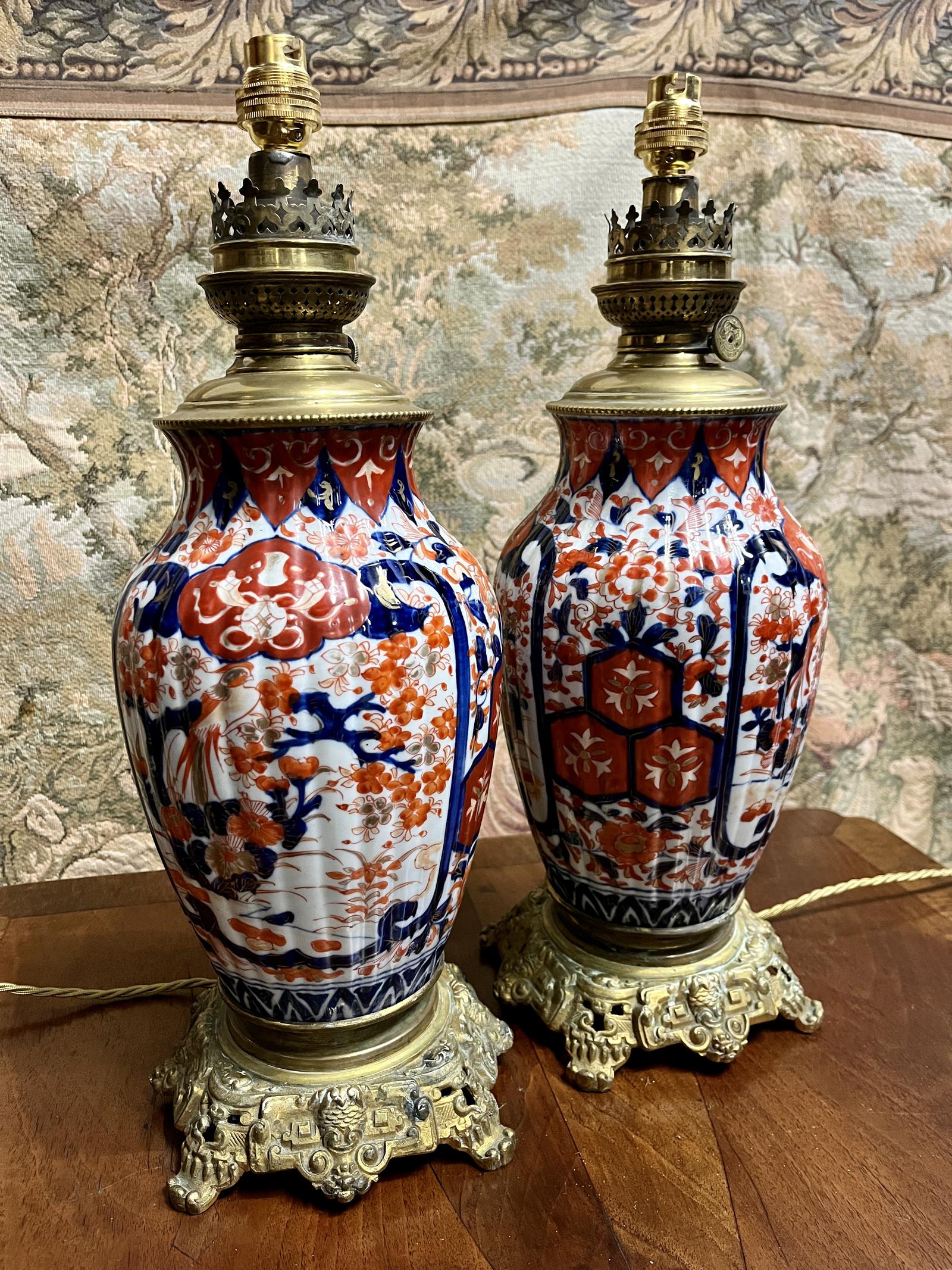 These are a superb pair of antique 19th Century Japanese Imari lamps, fitted on ormolu bases and with modern wiring (PAT tested).