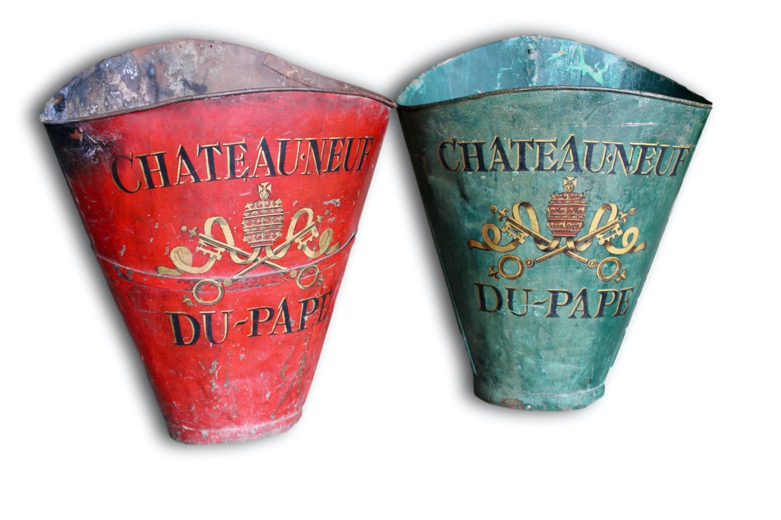 A fabulous pair of 19th century grape hods painted in the colours of Chateauneuf-Du-Pape.
