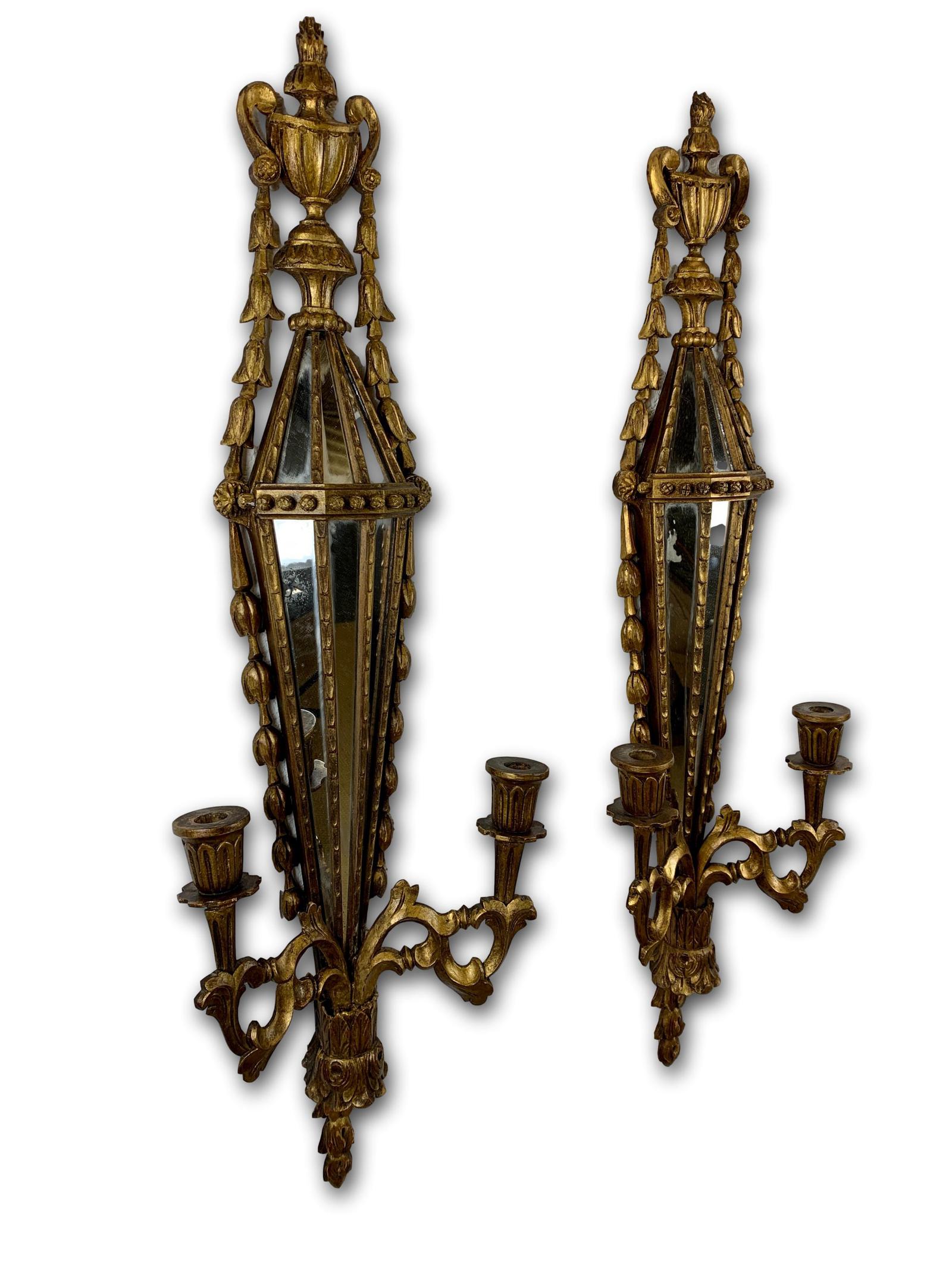 A stunning pair of late 19th C carved gilt wood wall candelabra.